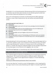 Anlage 1 Dienstanweisung zur Dokumentation und Aktenführung GC im Auswärtigen Dienst Gemäß 828 (1) i.V.m. 85 Verschlusssachen-Dienstanweisung (VSA) sind Verschlusssachen so zu vernichten, dass der Inhalt weder erkennbar ist noch erkennbar gemacht werden kann. Das Vernichten mittels einer Brandtonne ist nicht zulässig. Hierzu sind vom Bundesamt für Sicherheit und Informationstechnik (BSI) zugelassene Produkte zu nutzen. Diese Produkte können über das Kaufhaus des Bundes beschafft werden. Aussonderungsarten in der E-Akte sind U: Unbewertet- Das Schriftgutobjekt wurde noch nicht durch das zuständige End-Archiv bewertet.) A: Archivwürdig- Das Schriftgutobjekt wurde als archivwürdig bewertet und wird im Rahmen der Aussonderung an das End-Archiv abgegeben (Abgabe). B: Bewerten- Das Schriftgutobjekt wird nach Abgabe an das End-Archiv bewertet. V: Vernichten- Das Schriftgutobjekt wurde im Fristenkatalog vom Politischen Archiv zum Löschen freigegeben und wird im Rahmen der Aussonderung aus der E-Akte Bund gelöscht (Kassation). Standardeinstellung für die Aussonderungsart ist „Bewerten“. Die Aussonderungsart darf nur in „Vernichten“ geändert werden, wenn im Inland im Fristenkatalog ein Kreuz in der Spalte „Nicht an das Zwischenarchiv“ vermerkt ist. Im Ausland, wenn es sich um Schriftgut von Zeitwert „Z“ handelt. Nach Ablauf der Aufbewahrungsfrist wird das Schriftgut entsprechend der Aussonderungsart an das Politische Archiv abgegeben oder vernichtet. Weiterführende Regelungen zur Aussonderung in der E-Akte werden derzeit erstellt. 30. Was ist die Transferfrist? (Ziff. 2.9 DA) Die Transferfrist beginnt mit Abschluss der Bearbeitung durch die elektronische Zeichnung „Abgeschlossen“. Die Transferfrist läuft parallel zur Aufbewahrungsfrist. Während der Transferfrist ist es möglich, bereits abgeschlossene Vorgänge zur erneuten Bearbeitung wieder zu „öffnen“. Anleitung zum Öffnen bereits geschlossener Akten (in der lernbAAr) Erst nach dem Ablauf der Transferfrist werden Schriftgutobjekte an einen Langzeitspeicher übertragen. Danach ist keine weitere Bearbeitung mehr möglich. Ein lesender Zugriff bleibt 25 Stand: 01.08.2022
