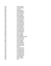 001 Unverpackt 003 Verpackt 001 Unverpackt 001 Unverpackt 001 Unverpackt 001 Unverpackt 001 Unverpackt 999 Keine Angabe 999 Keine Angabe 999 Keine Angabe 999 Keine Angabe 999 Keine Angabe 999 Keine Angabe 999 Keine Angabe 999 Keine Angabe 999 Keine Angabe 999 Keine Angabe 999 Keine Angabe 999 Keine Angabe 999 Keine Angabe 999 Keine Angabe 001 Unverpackt 999 Keine Angabe 999 Keine Angabe 999 Keine Angabe 999 Keine Angabe 999 Keine Angabe 999 Keine Angabe 999 Keine Angabe 999 Keine Angabe 999 Keine Angabe 999 Keine Angabe 999 Keine Angabe 999 Keine Angabe 999 Keine Angabe 999 Keine Angabe 999 Keine Angabe 001 Unverpackt 001 Unverpackt 100 Kunststoff/-folie 100 Kunststoff/-folie 100 Kunststoff/-folie 520 Weißblech