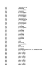 001 Unverpackt 100 Kunststoff/-folie 520 Weißblech 999 Keine Angabe 001 Unverpackt 001 Unverpackt 001 Unverpackt 150 Verbundmaterial 999 Keine Angabe 999 Keine Angabe 999 Keine Angabe 999 Keine Angabe 999 Keine Angabe 999 Keine Angabe 510 Aluminium-Folie/ -Blech 001 Unverpackt 100 Kunststoff/-folie 100 Kunststoff/-folie 001 Unverpackt 001 Unverpackt 001 Unverpackt 001 Unverpackt 001 Unverpackt 001 Unverpackt 001 Unverpackt 001 Unverpackt 001 Unverpackt 001 Unverpackt 999 Keine Angabe 001 Unverpackt 001 Unverpackt 001 Unverpackt 200 Glas 001 Unverpackt 001 Unverpackt 001 Unverpackt 001 Unverpackt 001 Unverpackt 001 Unverpackt 999 Keine Angabe 999 Keine Angabe 999 Keine Angabe 999 Keine Angabe