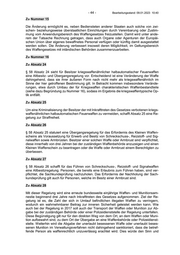 - 44 - Bearbeitungsstand: 09.01.2023 10:40 Zu Nummer 15 Die Änderung ermöglicht es, neben Bediensteten anderer Staaten auch solche von zwi- schen- beziehungsweise überstaatlichen Einrichtungen durch Vereinbarung oder Zustim- mung vom Anwendungsbereich des Waffengesetzes freizustellen. Damit wird unter ande- rem der Tatsache Rechnung getragen, dass auch Organe oder Agenturen der Europäi- schen Union über eigenes bewaffnetes Personal verfügen oder künftig damit ausgestattet werden sollen. Die Änderung verbessert insoweit deren Möglichkeit, im Geltungsbereich des Waffengesetzes mit inländischen Behörden zusammenzuarbeiten. Zu Nummer 16 Zu Absatz 24 § 58 Absatz 24 sieht für Besitzer kriegswaffenähnlicher halbautomatischer Feuerwaffen eine Altbesitz- und Übergangsregelung vor. Entscheidend ist eine Veränderung der Waffe dahingehend, dass sie ihrer äußeren Form nach nicht mehr als kriegswaffenähnlich im Sinne der hier getroffenen Bestimmung gilt. In Betracht kommen insbesondere Verände- rungen, etwa durch Umbau der für Kriegswaffen charakteristischen Waffenbestandteile (siehe dazu Begründung zu Nummer 16), sodass im Ergebnis die kriegswaffentypische Op- tik entfällt. Zu Absatz 25 Um eine Kriminalisierung der Besitzer der mit Inkrafttreten des Gesetzes verbotenen kriegs- waffenähnlichen halbautomatischen Feuerwaffen zu vermeiden, schafft Absatz 25 eine Re- gelung zur Straffreiheit. Zu Absatz 26 § 58 Absatz 25 statuiert eine Übergangsregelung für das Erfordernis des Kleinen Waffen- scheins als Voraussetzung für Erwerb und Besitz von Schreckschuss-, Reizstoff- und Sig- nalwaffen sowie Armbrüsten. Besitzer einer solchen Waffe oder Armbrust sind verpflichtet, diese innerhalb von drei Jahren bei der zuständigen Waffenbehörde anzuzeigen und einen Kleinen Waffenschein zu beantragen oder die Waffe oder Armbrust einem Berechtigten zu überlassen. Zu Absatz 27 § 58 Absatz 26 schafft für das Führen von Schreckschuss-, Reizstoff- und Signalwaffen eine Altbesitzregelung. Personen, die bereits eine Erlaubnis zum Führen haben, sind ver- pflichtet, die Sachkundeprüfung nachzuholen. Das Erfordernis der Nachholung der Sach- kundeprüfung gilt auch für Personen, welche im Besitz einer Armbrust sind. Zu Absatz 28 Mit dieser Regelung wird eine erneute bundesweite einjährige Waffen- und Munitionsam- nestie beginnend drei Jahre nach Inkrafttreten des Gesetzes aufgenommen. Ziel der Re- gelung ist es, die Zahl der sich in Umlauf befindlichen illegalen Waffen zu verringern, wodurch ein wahrnehmbarer Beitrag zur inneren Sicherheit geleistet werden kann. Wie auch bei der Regelung in 2017 soll auch der Transport der Waffen oder Munition zur Ab- gabe bei der zuständigen Behörde oder einer Polizeidienststelle der Regelung unterfallen. Diese Begünstigung gilt nur für den direkten Weg von dem Ort, an dem Waffen oder Muni- tion aufbewahrt sind, zu dem Ort der Übergabe an eine Waffenbehörde oder Polizeidienst- stelle. Weiterhin wird die Abgabe der unerlaubt besessenen Waffe oder unerlaubt beses- senen Munition im Verwaltungsverfahren nicht dahingehend sanktioniert, dass die betref- fende Person als waffenrechtlich unzuverlässig erachtet wird. Dies würde den Sinn und