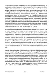 Solche Handlungen können nicht nur terroristische Akte als solche, sondern auch Unterstüt- zungshandlungen im Umfeld der konkreten Tat oder einer (terroristischen/verbotenen) Or- ganisation allgemein sein. Klare und glaubhafte Indizien können sich bspw. aus dem Vor- liegen einer Anklageschrift oder eines Haftbefehls ergeben. 8.2.2 Sicherheit der Bundesrepublik Deutschland Die Sicherheit der Bundesrepublik Deutschland im Sinne dieser Bestimmung umfasst die innere und äußere Sicherheit des Staates. Sie schützt nach innen den Bestand und die Funktionstüchtigkeit des Staates und seiner Einrichtungen. Das schließt den Schutz vor Einwirkungen durch Gewalt und Drohungen mit Gewalt auf die Wahrnehmung staatlicher Funktionen ein. In diesem Sinne richten sich auch Gewaltanschläge gegen Unbeteiligte zum Zwecke der Verbreitung allgemeiner Unsicherheit gegen die innere Sicherheit des Staates (BVerwG, Urteil vom 06.02.2019 - 1 A 3.18, Rn. 29). Eine Gefahr für die innere Sicherheit kann ein Ausländer dadurch darstellen bedeuten, dass er Straftaten im Sinne von §§ 80 ff. StGB oder andere Straftaten von entsprechendem Ge- wicht und ähnlicher Zielsetzung begeht (vgl. BVerwG, Urteil vom 05.05.1998 – 1 C 17/97). Er kann auch dadurch zu einer solchen Gefahr werden, dass er eine Organisation unter- stützt, die ihrerseits die innere Sicherheit der Bundesrepublik Deutschland gefährdet. Zur Beurteilung, ob eine Organisation als terroristisch oder extremistisch einzustufen ist, können nationale oder internationale Bewertungen (sog. EU-Terrorliste; sog. UN- Sanktionsliste) oder Rechtsakte (bspw. Verbotsverfügungen, Gerichtsurteile) herangezo- gen werden, in denen entsprechende Organisationen und Einzelpersonen genannt werden. Eine terroristische Vereinigung unterstützt, wer, ohne selbst Mitglied der Organisation zu sein, deren Tätigkeit und terroristische Bestrebungen direkt oder über eines ihrer Mitglieder fördert (vgl. BGH, Urteil vom 14.08.2009 – 3 StR 552/08). Bezüglich der Mitgliedschaft in einer terroristischen Vereinigung bedarf es keiner Differen- zierung zwischen einem Kreis von herausgehobenen Funktionären bzw. Kadern und den sonstigen Angehörigen. Es gibt keinen ausreichend sachlichen Grund dafür, denjenigen, der sich in Kenntnis von Zielen, Programmatik und Methoden der Organisation dieser an- schließt und in ihr betätigt, allein deshalb nicht als Mitglied der Vereinigung einzustufen, weil er nicht dem Kreis der führenden Funktionäre angehört (vgl. BGH, Beschluss vom 28.09.2010 – 3 StR 214/10, Urteil vom 28.10.2010 – 3 StR 179/10). Die bloße Zugehörigkeit zu einer derartigen Organisation für sich genommen reicht jedoch nicht aus. Vielmehr muss sich die von der Organisation ausgehende Gefährdung in der Person des Ausländers konkretisieren (vgl. BVerwG, Urteil vom 30.03.1999 – 9 C 31.98). Ausschlusstatbestände 12/19 Stand 05/22