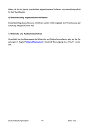 klären, ob für das bereits unanfechtbar abgeschlossene Verfahren noch eine Kostenpflicht für den Bund besteht. c) Bestandskräftig abgeschlossene Verfahren Bestandskräftig abgeschlossene Verfahren werden nicht vorgelegt. Die Veranlassung der Löschung erfolgt durch das AVS 4. Widerrufs- und Rücknahmeverfahren Hinsichtlich der Verfahrensweise bei Widerrufs- und Rücknahmeverfahren wird auf die Re- gelungen im Kapitel "Widerruf/Rücknahme", Abschnitt "Beendigung ohne Votum" verwie- sen. Deutsche Staatsangehörigkeit 4/4 Stand 10/22