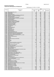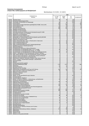 PD Nord Seite 22 von 211 Polizeiliche Kriminalstatistik erfasste Fälle, Aufklärungsquote und Häufigkeitszahl Berichtszeitraum: 01.01.2014 - 31.12.2014 2014 Schlüssel Kurzbezeichnung erf. Fälle aufgekl. Aq Schlüssel Haufigkeitszahl insges. Fälle in % 631100 Gewerbsmäßige Hehlerei von Kfz 0 0 0,0 0 632000 Sonstige Hehlerei 139 138 99,3 37 632079 Sonstige Hehlerei 129 128 99,2 34 632100 Gewerbsmäßige Hehlerei 10 10 100,0 3 633000 Geldwäsche, Verschleierung unrechtmäßig erl. Vermögenswerte 43 34 79,1 11 640000 Brandstiftung und Herbeiführen einer Brandgefahr 260 127 48,8 68 640010 Fahrlässige Brandstiftung 61 46 75,4 16 640020 Fahrlässiges Herbeiführen einer Brandgefahr 1 1 100,0 0 641000 (Vorsätzliche) Brandstiftung und Herbeiführen einer Brandgefahr 198 80 40,4 52 641010 Vorsätzliche Brandstiftung 168 59 35,1 44 641020 Schwere Brandstiftung 27 20 74,1 7 641030 Besonders schwere Brandstiftung 0 0 0,0 0 641050 Vorsätzliches Herbeiführen einer Brandgefahr 3 1 33,3 1 650000 Wettbewerbs-, Korruptions- und Amtsdelikte 178 118 66,3 47 651000 Vorteilsannahme, Bestechlichkeit 56 36 64,3 15 651100 Vorteilsannahme § 331 StGB 34 15 44,1 9 651200 Bestechlichkeit § 332 StGB 22 21 95,5 6 652000 Vorteilsgewährung, Bestechung 47 27 57,4 12 652100 Vorteilsgewährung 25 17 68,0 7 652200 Bestechung 22 10 45,5 6 655000 Sonstige Straftaten im Amt 24 7 29,2 6 655001 Strafvereitelung im Amt 2 1 50,0 1 655002 Rechtsbeugung 1 0 0,0 0 655004 Verfolgung Unschuldiger 1 0 0,0 0 655007 Gebührenüberhebung 2 1 50,0 1 655100 Körperverletzung im Amt 16 5 31,3 4 655200 Verletzung des Dienstgeheimnisses 2 0 0,0 1 656000 Wettbewerbsbeschränk. Absprachen bei Ausschreibungen 2 2 100,0 1 657000 Bestechlichkeit und Bestechung im geschäftlichen Verkehr 49 46 93,9 13 657100 Bestechlichkeit und Bestechung gemäß § 299 StGB 49 46 93,9 13 657110 Bestechlichkeit und Bestechung gemäß § 299 Abs. 1 und 2 StGB 49 46 93,9 13 660000 Strafbarer Eigennutz 124 102 82,3 33 660010 Vereiteln der Zwangsvollstreckung 0 0 0,0 0 660020 Pfandkehr 3 3 100,0 1 661000 Glücksspiel 0 0 0,0 0 661010 Unerlaubte Veranstaltung eines Glücksspiels 0 0 0,0 0 662000 Wilderei 120 99 82,5 32 662001 Fischwilderei 105 97 92,4 28 662100 Jagdwilderei 15 2 13,3 4 663000 Wucher 1 0 0,0 0 670000 Alle sonstigen ST gemäß StGB - ohne Verkehrsdelikte 5.507 3.005 54,6 1.449 670001 Falsche uneidliche Aussage (Falschaussage) 47 48 102,1 12 670002 Meineid 2 2 100,0 1 670003 Falsche Versicherung an Eides statt 32 31 96,9 8 670005 Verleitung zur Falschaussage 1 1 100,0 0 670006 Fahrl. Falscheid, fahrl. falsche Versicherung an Eides statt 0 0 0,0 0 670007 Falsche Verdächtigung 138 135 97,8 36 670009 Störung der Religionsausübung 1 1 100,0 0 670011 Störung der Totenruhe 7 1 14,3 2 670015 Üble Nachrede und Verleumdung gg. Personen des politischen Lebens 1 1 100,0 0 670016 Verletzung der Vertraulichkeit des Wortes 4 4 100,0 1 670017 Verletzung des Briefgeheimnisses 30 16 53,3 8 670018 Verletzung von Privatgeheimnissen 3 2 66,7 1 670020 Verletzung des Post- u. Fernmeldegeheimnisses 10 5 50,0 3 670024 Gefährl. Eingriffe in den Bahn-, Schiffs- und Luftverkehr 20 11 55,0 5 670025 Gefährliche Eingriffe in den Straßenverkehr 132 69 52,3 35 670026 Störung öffentlicher Betriebe 5 1 20,0 1 670027 Störung von Telekommunikationsanlagen 15 15 100,0 4 670029 Baugefährdung 8 7 87,5 2 670032 Unterlassene Hilfeleistung 25 23 92,0 7 670034 Verl. des höchstpersönl. Lebensbereiches durch Bildaufnahmen 49 40 81,6 13 671000 Verletzung der Unterhaltspflicht 61 63 103,3 16 672000 Verletzung der Fürsorge- oder Erziehungspflicht 69 67 97,1 18 673000 Beleidigung 1.420 1.327 93,5 374 673010 Beleidigung ohne sex. Grundlage 952 903 94,9 251 673020 Üble Nachrede ohne sex. Grundlage 124 119 96,0 33 673030 Verleumdung ohne sex. Grundlage 243 222 91,4 64 673040 Verunglimpfung des Andenkens Verstorbener ohne sex. Grundlage 0 0 0,0 0 673100 Beleidigung auf sex. Grundlage 101 83 82,2 27 673110 Beleidigung auf sex. Grundlage 90 74 82,2 24 673120 Üble Nachrede auf sex. Grundlage 7 5 71,4 2 673130 Verleumdung auf sex. Grundlage 4 4 100,0 1 674000 Sachbeschädigung 3.325 1.094 32,9 875 674010 Sachbeschädigung (ohne 674100, 674300) 2.160 783 36,3 568 674011 Sachbeschädigung durch Graffiti (ohne 674111, 674311) 500 94 18,8 132 674012 Sachbeschädigung durch Feuer (ohne 674312) 181 52 28,7 48 674019 Sonstige Sachbeschäd. (ohne 674119, 674319) 1.479 637 43,1 389