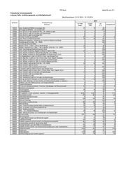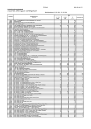 PD Nord Seite 24 von 211 Polizeiliche Kriminalstatistik erfasste Fälle, Aufklärungsquote und Häufigkeitszahl Berichtszeitraum: 01.01.2014 - 31.12.2014 2014 Schlüssel Kurzbezeichnung erf. Fälle aufgekl. Aq Schlüssel Haufigkeitszahl insges. Fälle in % 719000 Sonst. ST (Nebengesetze) a. d. Wirtschaftssektor (z.B. RennwG) 16 9 56,3 4 719040 Gewerbeordnung 0 0 0,0 0 719079 Sonstige Nebengesetze auf dem Wirtschaftssektor 14 8 57,1 4 719200 ST nach UWG ohne § 17 2 1 50,0 1 720000 ST gg. sonstige strafrechtliche Nebengesetze -ohne Verkehrsdelikte- 549 515 93,8 144 720002 Versammlungsgesetze des Bundes und der Länder 19 16 84,2 5 720005 Missbräuchl. Herstellen, Vertreiben oder Ausgeben von amtl. Kennzeichen 4 3 75,0 1 720011 ST gemäß § 4 Gewaltschutzgesetz 68 68 100,0 18 720079 Sonstige strafrechtliche Nebengesetze 7 4 57,1 2 721000 ST gg. § 27 Abs. 2 des Jugendschutzgesetzes 2 0 0,0 1 722000 ST gg. § 27 Abs. 1 des Jugendschutzgesetzes 3 3 100,0 1 725000 ST gg. das Aufenthalts-, das Asylverf.- und das Freizügigkeitsgesetz/EU 194 192 99,0 51 725100 Unerlaubte Einreise gem. § 95 Abs. 1 Nr. 3 und Abs. 2 Nr. 1a Aufenthaltsgesetz 14 13 92,9 4 725110 Unerl. Einreise gemäß § 95 Abs. 1 Nr. 3 Aufenthaltsgesetz 13 12 92,3 3 725120 Unerl. Wiedereinreise nach Ausweisung/Abschiebung 1 1 100,0 0 725200 Einschleusen von Ausländern gemäß § 96 Aufenthaltsgesetz 1 1 100,0 0 725210 Einschleusen v. Ausländern gemäß § 96 Abs. 1 und 4 Aufenthaltsgesetz 1 1 100,0 0 725300 Erschleichen eines Aufenthaltstitels gemäß § 95 Abs. 2 Nr. 2 Aufenthaltsgesetz 3 3 100,0 1 725310 Erschleichen oder Gebrauch eines Aufenthaltstitels (Visum) 3 3 100,0 1 725312 Aufenthaltstitels (Visum) durch sonstigen Modus Operandi 3 3 100,0 1 725320 Erschleichen oder Gebrauch eines Aufenthaltstitels (Aufenthaltserlaubnis) 0 0 0,0 0 725321 Aufenthaltstitels (Aufenthaltserlaubnis) durch Scheinehe 0 0 0,0 0 725322 Aufenthaltstitels (Aufenthaltserlaubnis) durch Modus Operandi 0 0 0,0 0 725400 Einschleusen mit Todesfolge; gewerbs- und bandenm. Einschl. v. Ausländern 0 0 0,0 0 725420 Gewerbs- und bandenmäßiges Einschleusen von Ausländern 0 0 0,0 0 725500 ST gg. §§ 84, 85 Asylverfahrensgesetz 41 41 100,0 11 725510 ST gg. § 84 Asylverfahrsgesetz 1 1 100,0 0 725520 ST gg. § 85 Asylverfahrsgesetz 40 40 100,0 11 725700 Unerl. Aufenthalt gem. § 95 Abs. 1 Nr. 1, 2 und Abs. 2 Nr. 1b Aufenthaltsgesetz 27 27 100,0 7 725710 Unerl. Aufenthalt gemäß § 95 Abs. 1 Nr. 1 und 2 AufenthG 11 11 100,0 3 725711 Unerl. Aufenthalt nach erlaubter Einreise 4 4 100,0 1 725712 Unerl. Aufenthalt nach unerl./ungeklärter Einreise 7 7 100,0 2 725720 Unerlaubter Aufenthalt nach Ausweisung/Abschiebung 16 16 100,0 4 725800 Einreise oder Aufenthalt trotz Versagung des Freizügigkeitsrechts 2 2 100,0 1 725900 Sonstige Verstöße gg. das Aufenthaltsgesetz 106 105 99,1 28 726000 ST gg. das Sprengstoff-, das Waffen- und das KriegswaffenkontrollG 247 226 91,5 65 726100 ST gg. das Sprengstoffgesetz 35 31 88,6 9 726200 ST gg. das Waffengesetz 198 182 91,9 52 726300 ST gg. das Kriegswaffenkontrollgesetz 14 13 92,9 4 728000 ST gg. das Bundes- (oder Landes-) Datenschutzgesetz 5 3 60,0 1 728010 ST gg. Landesdatenschutzgesetz 3 1 33,3 1 728020 ST gg. das Bundesdatenschutzgesetz 2 2 100,0 1 730000 Rauschgiftdelikte -BtMG- 867 819 94,5 228 731000 Allg. Verstöße gemäß § 29 BtMG (soweit nicht unter 7340 pp. zu erfassen) 675 645 95,6 178 731100 Allg. Verstoß (§ 29 BtMG) - mit Heroin 7 7 100,0 2 731200 Allgemeiner Verstoß (§ 29 BtMG) - mit Kokain einschl. Crack 46 45 97,8 12 731201 Allg. Verstoß (§ 29 BtMG) - mit Crack 1 1 100,0 0 731202 Allg. Verstoß (§ 29 BtMG) - Kokain 45 44 97,8 12 731300 Allg. Verstoß (§ 29 BtMG) - mit LSD 1 1 100,0 0 731400 Allg. Verstoß - mit Amphet./Methamphet in Pulver- o. flüss. Form 0 0 0,0 0 731500 Allg. Verstoß - mit Amphet./Methamphet (Ecstasy) 0 0 0,0 0 731600 Allg. Verstoß mit Amphet. u. Deriv. in Pulver-/flüss.-/Tabl.-/Kapself. (Ecstasy) 158 150 94,9 42 731601 Allg. Verstoß mit Amphet. in Pulver- oder flüssiger Form 136 129 94,9 36 731602 Allg. Verstoß mit Amphet. in Tabl.- bzw. Kapselform (Ecstasy) 22 21 95,5 6 731700 Allg. Verstoß mit Methamphet. in Pulver-/krist.-/flüss.-/Tabl.-/Kapselform 2 2 100,0 1 731701 Allg. Verstoß Methamphet. in Pulver- oder flüssiger Form 2 2 100,0 1 731800 Allg. Verstoß (§ 29 BtMG) - mit Cannabis und Zubereitungen 435 415 95,4 114 731900 Allg. Verstoß (§ 29 BtMG) - mit sonst. Btm 26 25 96,2 7 732000 Unerl. Handel/Schmuggel mit/von Rauschgiften gemäß § 29 BtMG 103 98 95,1 27 732100 Unerl. Handel und Schmuggel mit/von Heroin 1 1 100,0 0 732110 Unerl. Handel mit Heroin 1 1 100,0 0 732200 Unerl. Handel und Schmuggel mit/von Kokain einschl. Crack 3 3 100,0 1 732210 Unerl. Handel mit Kokain einschl. Crack 3 3 100,0 1 732212 Unerl. Handel mit Kokain 3 3 100,0 1 732300 Unerl. Handel und Schmuggel mit/von LSD 0 0 0,0 0 732310 Unerl. Handel mit LSD 0 0 0,0 0 732400 Unerl. Handel/Schmuggel mit/von Amphet./Methamphet. in Pulver- o. flüss. Form 0 0 0,0 0 732410 Ill. Handel - mit Amphet./Methamphet. u. d. Deriva. in Pulver- o. flüss. Form 0 0 0,0 0 732500 Unerl. Handel/Schmuggel mit/von Amphet./Methamphet. (Ecstasy) 0 0 0,0 0 732510 Ill. Handel - mit Amphet./Methamphet. u. d. Deriva. (Ecstasy) 0 0 0,0 0 732600 Unerl. Handel/Schmuggel Amphet./Deriv. in Pulver-/flüss.-/Tabl.-/Kapself. (Ecs.) 27 27 100,0 7 732610 Unerl. Handel mit Amphet. u. Deriv. in Pulver-/flüss.-/Tabl.-/Kapself. (Ecstasy) 27 27 100,0 7 732611 Unerl. Handel mit Amphet. in Pulver- oder flüssiger Form 26 26 100,0 7 732612 Unerl. Handel mit Amphet. in Tabl.- bzw. Kapselform (Ecstasy) 1 1 100,0 0 732800 Unerl. Handel und Schmuggel (§ 29 BtMG) mit/von Cannabis und Zubereitungen 50 48 96,0 13 732810 Unerl. Handel (§ 29 BtMG) mit Cannabis und Zubereitungen 50 48 96,0 13 732900 Unerl. Handel und Schmuggel (§ 29 BtMG) mit/von sonstigen Btm 22 19 86,4 6