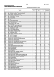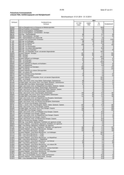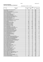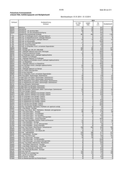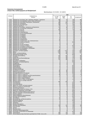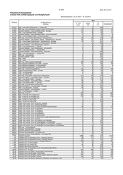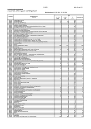 PI OPR Seite 33 von 211 Polizeiliche Kriminalstatistik erfasste Fälle, Aufklärungsquote und Häufigkeitszahl Berichtszeitraum: 01.01.2014 - 31.12.2014 2014 Schlüssel Kurzbezeichnung erf. Fälle aufgekl. Aq Schlüssel Haufigkeitszahl insges. Fälle in % 712000 Straftaten nach AktG, GenG, GmbHG, HGB, RechnungslegungsG, UmwandlungsG, InsO 5 5 100,0 5 712200 Insolvenzverschleppung § 15a InsO 5 5 100,0 5 715000 ST i.Z.m. Urheberrechtsbestimmungen 6 6 100,0 6 715040 Kunsturheberrechtsgesetz 5 5 100,0 5 715050 UHG -sonstige Verstöße- (ohne Schl. 715100 u. 725200) 1 1 100,0 1 716000 ST i.Z.m. Lebensmitteln (z.B. Lebensmittel- und Futtermittelgesetzbuch) 5 5 100,0 5 716100 ST nach dem Lebensmittel- und Bedarfsgg.ständegesetz 2 2 100,0 2 716200 ST nach dem Arzneimittelgesetz 3 3 100,0 3 716210 ST nach dem AMG gemäß § 95 2 2 100,0 2 716213 Unerl. Handel, Abgabe, Bezug von verschreibungspflichtigen Arzneimitteln 1 1 100,0 1 716219 Sonstige ST nach dem AMG gemäß § 95 1 1 100,0 1 716220 ST nach dem Arzneimittelgesetz gemäß § 96 AMG 1 1 100,0 1 719000 Sonst. ST (Nebengesetze) a. d. Wirtschaftssektor (z.B. RennwG) 7 3 42,9 7 719079 Sonstige Nebengesetze auf dem Wirtschaftssektor 7 3 42,9 7 719200 ST nach UWG ohne § 17 0 0 0,0 0 720000 ST gg. sonstige strafrechtliche Nebengesetze -ohne Verkehrsdelikte- 123 116 94,3 124 720002 Versammlungsgesetze des Bundes und der Länder 3 3 100,0 3 720011 ST gemäß § 4 Gewaltschutzgesetz 25 25 100,0 25 720079 Sonstige strafrechtliche Nebengesetze 5 3 60,0 5 721000 ST gg. § 27 Abs. 2 des Jugendschutzgesetzes 0 0 0,0 0 725000 ST gg. das Aufenthalts-, das Asylverf.- und das Freizügigkeitsgesetz/EU 20 18 90,0 20 725100 Unerlaubte Einreise gem. § 95 Abs. 1 Nr. 3 und Abs. 2 Nr. 1a Aufenthaltsgesetz 6 5 83,3 6 725110 Unerl. Einreise gemäß § 95 Abs. 1 Nr. 3 Aufenthaltsgesetz 5 4 80,0 5 725120 Unerl. Wiedereinreise nach Ausweisung/Abschiebung 1 1 100,0 1 725200 Einschleusen von Ausländern gemäß § 96 Aufenthaltsgesetz 1 1 100,0 1 725210 Einschleusen v. Ausländern gemäß § 96 Abs. 1 und 4 Aufenthaltsgesetz 1 1 100,0 1 725300 Erschleichen eines Aufenthaltstitels gemäß § 95 Abs. 2 Nr. 2 Aufenthaltsgesetz 3 3 100,0 3 725310 Erschleichen oder Gebrauch eines Aufenthaltstitels (Visum) 3 3 100,0 3 725312 Aufenthaltstitels (Visum) durch sonstigen Modus Operandi 3 3 100,0 3 725320 Erschleichen oder Gebrauch eines Aufenthaltstitels (Aufenthaltserlaubnis) 0 0 0,0 0 725321 Aufenthaltstitels (Aufenthaltserlaubnis) durch Scheinehe 0 0 0,0 0 725400 Einschleusen mit Todesfolge; gewerbs- und bandenm. Einschl. v. Ausländern 0 0 0,0 0 725420 Gewerbs- und bandenmäßiges Einschleusen von Ausländern 0 0 0,0 0 725500 ST gg. §§ 84, 85 Asylverfahrensgesetz 0 0 0,0 0 725520 ST gg. § 85 Asylverfahrsgesetz 0 0 0,0 0 725700 Unerl. Aufenthalt gem. § 95 Abs. 1 Nr. 1, 2 und Abs. 2 Nr. 1b Aufenthaltsgesetz 3 3 100,0 3 725710 Unerl. Aufenthalt gemäß § 95 Abs. 1 Nr. 1 und 2 AufenthG 0 0 0,0 0 725720 Unerlaubter Aufenthalt nach Ausweisung/Abschiebung 3 3 100,0 3 725900 Sonstige Verstöße gg. das Aufenthaltsgesetz 7 6 85,7 7 726000 ST gg. das Sprengstoff-, das Waffen- und das KriegswaffenkontrollG 70 67 95,7 71 726100 ST gg. das Sprengstoffgesetz 10 9 90,0 10 726200 ST gg. das Waffengesetz 57 55 96,5 58 726300 ST gg. das Kriegswaffenkontrollgesetz 3 3 100,0 3 728000 ST gg. das Bundes- (oder Landes-) Datenschutzgesetz 0 0 0,0 0 728010 ST gg. Landesdatenschutzgesetz 0 0 0,0 0 730000 Rauschgiftdelikte -BtMG- 218 213 97,7 220 731000 Allg. Verstöße gemäß § 29 BtMG (soweit nicht unter 7340 pp. zu erfassen) 157 155 98,7 159 731100 Allg. Verstoß (§ 29 BtMG) - mit Heroin 4 4 100,0 4 731200 Allgemeiner Verstoß (§ 29 BtMG) - mit Kokain einschl. Crack 11 11 100,0 11 731202 Allg. Verstoß (§ 29 BtMG) - Kokain 11 11 100,0 11 731400 Allg. Verstoß - mit Amphet./Methamphet in Pulver- o. flüss. Form 0 0 0,0 0 731500 Allg. Verstoß - mit Amphet./Methamphet (Ecstasy) 0 0 0,0 0 731600 Allg. Verstoß mit Amphet. u. Deriv. in Pulver-/flüss.-/Tabl.-/Kapself. (Ecstasy) 37 36 97,3 37 731601 Allg. Verstoß mit Amphet. in Pulver- oder flüssiger Form 32 31 96,9 32 731602 Allg. Verstoß mit Amphet. in Tabl.- bzw. Kapselform (Ecstasy) 5 5 100,0 5 731700 Allg. Verstoß mit Methamphet. in Pulver-/krist.-/flüss.-/Tabl.-/Kapselform 2 2 100,0 2 731701 Allg. Verstoß Methamphet. in Pulver- oder flüssiger Form 2 2 100,0 2 731800 Allg. Verstoß (§ 29 BtMG) - mit Cannabis und Zubereitungen 98 97 99,0 99 731900 Allg. Verstoß (§ 29 BtMG) - mit sonst. Btm 5 5 100,0 5 732000 Unerl. Handel/Schmuggel mit/von Rauschgiften gemäß § 29 BtMG 36 35 97,2 36 732100 Unerl. Handel und Schmuggel mit/von Heroin 1 1 100,0 1 732110 Unerl. Handel mit Heroin 1 1 100,0 1 732200 Unerl. Handel und Schmuggel mit/von Kokain einschl. Crack 1 1 100,0 1 732210 Unerl. Handel mit Kokain einschl. Crack 1 1 100,0 1 732212 Unerl. Handel mit Kokain 1 1 100,0 1 732300 Unerl. Handel und Schmuggel mit/von LSD 0 0 0,0 0 732310 Unerl. Handel mit LSD 0 0 0,0 0 732400 Unerl. Handel/Schmuggel mit/von Amphet./Methamphet. in Pulver- o. flüss. Form 0 0 0,0 0 732410 Ill. Handel - mit Amphet./Methamphet. u. d. Deriva. in Pulver- o. flüss. Form 0 0 0,0 0 732500 Unerl. Handel/Schmuggel mit/von Amphet./Methamphet. (Ecstasy) 0 0 0,0 0 732510 Ill. Handel - mit Amphet./Methamphet. u. d. Deriva. (Ecstasy) 0 0 0,0 0 732600 Unerl. Handel/Schmuggel Amphet./Deriv. in Pulver-/flüss.-/Tabl.-/Kapself. (Ecs.) 7 7 100,0 7 732610 Unerl. Handel mit Amphet. u. Deriv. in Pulver-/flüss.-/Tabl.-/Kapself. (Ecstasy) 7 7 100,0 7 732611 Unerl. Handel mit Amphet. in Pulver- oder flüssiger Form 7 7 100,0 7 732800 Unerl. Handel und Schmuggel (§ 29 BtMG) mit/von Cannabis und Zubereitungen 17 17 100,0 17 732810 Unerl. Handel (§ 29 BtMG) mit Cannabis und Zubereitungen 17 17 100,0 17 732900 Unerl. Handel und Schmuggel (§ 29 BtMG) mit/von sonstigen Btm 10 9 90,0 10