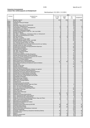 PI OPR Seite 34 von 211 Polizeiliche Kriminalstatistik erfasste Fälle, Aufklärungsquote und Häufigkeitszahl Berichtszeitraum: 01.01.2014 - 31.12.2014 2014 Schlüssel Kurzbezeichnung erf. Fälle aufgekl. Aq Schlüssel Haufigkeitszahl insges. Fälle in % 732910 Unerl. Handel (§ 29 BtMG) mit sonstigen Btm 9 8 88,9 9 732920 Schmuggel (§ 29 BtMG) - von sonstigen Btm 1 1 100,0 1 734000 Sonstige Verstöße gg. das BtMG 25 23 92,0 25 734100 Unerl. Anbau von Betäubungsmitteln 12 11 91,7 12 734200 Betäubungsmittelanbau, -herstellung und -handel als Mitglied einer Bande 1 1 100,0 1 734210 Verstöße gemäß § 30 Abs. 1 Nr. 1 BtMG 1 1 100,0 1 734500 Abgabe, Verabr. o. Überl. v. Btm an Minderjährige 4 3 75,0 4 734510 Abgabe, Verabreichung o. Überl. v. Btm an Minderj. § 29a Abs. 1 Nr. 1 BtMG 4 3 75,0 4 734700 Unerl. Verschreibung/Verabreichung durch Ärzte 1 1 100,0 1 734800 Unerl. Handel, Herstellung, Abgabe und Besitz in ngM von Btm 7 7 100,0 7 734810 Unerl. Abgabe und Besitz in ngM gemäß § 29a Abs. 1 Nr. 2 BtMG 2 2 100,0 2 734814 Ill.(r) Abgabe/Besitz in ngM von A/M/D in Pulver- oder flüssiger Form 0 0 0,0 0 734818 Unerl. Abgabe und Besitz in ngM von Cannabis und Zubereitungen 2 2 100,0 2 734819 Unerl. Abgabe und Besitz in ngM von sonstigen Betäubungsmitteln 0 0 0,0 0 734820 Unerl. Handel in ngM gemäß § 29a Abs. 1 Nr. 2 BtMG 4 4 100,0 4 734822 Unerl. Handel in ngM von Kokain einschl. Crack 1 1 100,0 1 734826 Unerl. Handel in ngM mit Amph./Deriv. in Pulver-/flüss.-/Tabl.-/Kapself. (Ecst.) 2 2 100,0 2 734828 Unerl. Handel in ngM von Cannabis und Zubereitungen 0 0 0,0 0 734829 Unerl. Handel in ngM von sonstigen Btm 1 1 100,0 1 734840 Unerl. Herstellung in ngM 1 1 100,0 1 734848 Unerl. Herstellung in ngM von Cannabis und Zubereitungen 1 1 100,0 1 740000 Straft. gg. strafrechtl. Nebenges. auf dem Umwelt- und Verbraucherschutzsektor 33 26 78,8 33 740079 Sonst. strafr. Nebenges. auf dem Umwelt- und Verbraucherschutzsek. (o. Lebensm.) 1 1 100,0 1 743000 ST nach dem Bundesnaturschutz-, Tierschutz-, Bundesjagd- und PflanzenschutzG 32 25 78,1 32 743010 Bundesnaturschutzgesetz 0 0 0,0 0 743020 Tierschutzgesetz 30 23 76,7 30 743030 Bundesjagdgesetz 2 2 100,0 2 890000 ST insgesamt, o. Verst. g. Aufenth.-, Asylverf.- u. FreizügigkeitsG/EU 7.839 4.736 60,4 7.923 891000 Rauschgiftkriminalität 220 214 97,3 222 891100 direkte Beschaffungskriminalität 2 1 50,0 2 892000 Gewaltkriminalität 189 164 86,8 191 892500 Mord und Totschlag 7 7 100,0 7 893000 Wirtschaftskriminalität und zwar: 54 46 85,2 55 893100 Wikri bei Betrug 17 17 100,0 17 893200 Wikri - Insolvenzstraftaten gemäß StGB und Nebenstrafrecht 6 6 100,0 6 893300 Wikri - im Anlage- und Finanzierungsbereich pp. 1 1 100,0 1 893400 Wikri - Wettbewerbsdelikte 0 0 0,0 0 893500 Wikri - i.Z.m. Arbeitsverhältnissen 13 13 100,0 13 893600 Wikri - Betrug und Untreue i.Z.m. Beteiligungen und Kapitalanlagen 0 0 0,0 0 894000 KFZ-Kriminalität 751 184 24,5 759 895000 Menschenhandel 2 2 100,0 2 896000 ST gegen Bestimmungen zum Schutze der Jugend 1 1 100,0 1 897000 Computerkriminalität 56 45 80,4 57 898000 Straftaten insgesamt auf dem Umwelt- und Verbraucherschutzsektor 126 94 74,6 127 898100 Umweltstraftaten gemäß 29. Abschnitt des StGB 16 8 50,0 16 898200 Sonstige Straftaten nach dem StGB mit Umweltrelevanz 72 55 76,4 73 898300 Straftaten auf dem Umwelt- und Verbraucherschutzsektor gem. strafr. Nebengesetze 38 31 81,6 38 899000 Straßenkriminalität 1.276 309 24,2 1.290 899100 Straßenraub 24 9 37,5 24 899200 Straßendiebstahl 893 140 15,7 903 899500 Sachbeschädigung durch Graffiti insgesamt 124 34 27,4 125