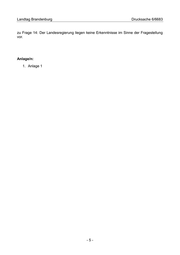 Landtag Brandenburg Drucksache 6/6683 zu Frage 14: Der Landesregierung liegen keine Erkenntnisse im Sinne der Fragestellung vor. Anlage/n: 1. Anlage 1 -5-