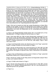 Kredithöhe 400 Mio. €, Vertrag vom 22.07.2009 37 % -> Bürgschaftsbetrag 148 Mio. € Mit Bescheid vom 07.07.2016 übernahmen die bereits genannten Bürgen eine Bürg- schaft zur 100 %-igen Absicherung eines Kredites über 2,487 Mrd. €. Der Absiche- rungsanteil des Landes Brandenburg beträgt auch hier 37 %. Dies entspricht einem Bürgschaftsbetrag von 920,19 Mio. € zugunsten der FBB. Die Bürgschaftsurkunden sind noch nicht ausgestellt. Dies erfolgt, sobald die im Bescheid genannten „Auf- schiebenden Bedingungen / Wirksamkeitsvoraussetzungen der Bürgschaftsbewilli- gungen“ erfüllt sind. In Höhe von 1,387 Mrd. € dient die Bürgschaft der Refinanzie- rung des oben erwähnten Kredites über 1,4 Mrd. € (Vertrag vom 26.06.2009). Der Vorgang wird bei dem Ministerium der Finanzen unter dem Geschäftszeichen 41VV4700.3110/2015#01#01 geführt. Die Bundesrepublik Deutschland und das Land Berlin haben vergleichbare Bürgschaftserklärungen abgegeben, die ebenfalls ihrem Geschäftsanteil an der Flughafengesellschaft entsprechen. Frage 2: Wie hoch ist jeweils der Anteil des Landes Brandenburg an diesen Bürg- schaften mit der Angabe, um was für eine Bürgschaft es sich handelt und in welchen Prozentsatz der Höhe wird verbürgt (z. B. 60, 80 oder 100 Prozent)? Mit Angabe der Aktenzeichen unter denen die Bürgschaften bei der Landesregierung Brandenburg geführt werden zu Frage 2: Das Bürgschaftsobligo beträgt jeweils 100 %. Es handelt sich um Aus- fallbürgschaften. Im Übrigen verweise ich auf die Antwort zur Frage 1. Frage 3: Was haben BBF bzw. FBB mit diesen Bürgschaften angefangen? Zu wes- sen Gunsten wurden die Bürgschaften verwendet? Haben BBF bzw. FBB dafür Kre- dite aufgenommen? Wenn ja, sind die Bürgschaften zu 100 Prozent oder zu wie viel Prozent in Anspruch genommen von der FBS bzw. FBB belegt? Frage 4: Wenn nicht, warum nicht? zu Frage 3: Die Bürgschaften dienen der Absicherung der in der Frage 1 genannten Kredite. Im Übrigen verweise ich auf die Antwort zu Frage 2. Frage 4: Wurden die Bürgschaften des Landes Brandenburg für FBS, BBF oder FBB bisher fällig? Wenn ja, wie wurden diese im Landeshaushalt des Landes Branden- burg verbucht? Mit Angabe mit genauer Höhe, Datum, Aktenzeichen und Haushalts- titel. zu Frage 4: Das Land Brandenburg wurde aus den in Antwort zur Frage 1 genannten Bürgschaften bislang nicht in Anspruch genommen. Frage 5: Wurde der Landtag mit dem fällig werden der Bürgschaften befasst? Wenn ja, wann und in welchen Gremien? zu Frage 5: Entfällt, siehe Antwort zu Frage 4. Frage 6: Wurden diese Bürgschaften der drei Gesellschafter für FBS, BBF und/oder FBB der EU im aktuellen Notifizierungsverfahren, das vom Land Brandenburg nur Negativtest genannt wird, gemeldet? zu Frage 6: Ja.