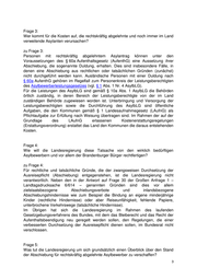 Frage 3: Wer kommt für die Kosten auf, die rechtskräftig abgelehnte und noch immer im Land verweilende Asylanten verursachen? zu Frage 3: Personen mit rechtskräftig abgelehntem Asylantrag können unter den Voraussetzungen des § 60a Aufenthaltsgesetz (AufenthG) eine Aussetzung ihrer Abschiebung, die sogenannte Duldung, erhalten. Dies sind insbesondere Fälle, in denen eine Abschiebung aus rechtlichen oder tatsächlichen Gründen (zunächst) nicht durchgeführt werden kann. Ausländische Personen mit einer Duldung nach § 60a AufenthG gehören im Regelfall zum Personenkreis der Leistungsberechtigten des Asylbewerberleistungsgesetzes (vgl. § 1 Abs. 1 Nr. 4 AsylbLG). Für die Leistungen des AsylbLG sind gemäß § 10a Abs. 1 AsylbLG die Behörden örtlich zuständig, in deren Bereich der Leistungsberechtigte von der im Land zuständigen Behörde zugewiesen worden ist. Unterbringung und Versorgung der Leistungsberechtigten sowie die Durchführung des AsylbLG sind öffentliche Aufgaben, die den Kommunen gemäß § 1 Landesaufnahmegesetz (LAufnG) als Pflichtaufgabe zur Erfüllung nach Weisung übertragen sind. Im Rahmen der auf der Grundlage des LAufnG erlassenen Kostenerstattungsregelungen (Erstattungsverordnung) erstattet das Land den Kommunen die daraus entstehenden Kosten. Frage 4: Wie will die Landesregierung diese Tatsache von den wirklich bedürftigen Asylbewerbern und vor allem der Brandenburger Bürger rechtfertigen? zu Frage 4: Für rechtliche und tatsächliche Gründe, die der zwangsweisen Durchsetzung der Ausreisepflicht (Abschiebung) entgegenstehen, ist die Landesregierung nicht verantwortlich. Neben den in der Antwort auf Frage 30 der Großen Anfrage 1 – Landtagsdrucksache 6/614 – genannten Gründen sind dies vor allem zielstaatsbezogene Abschiebungsverbote und inlandsbezogene Abschiebungshindernisse wie zum Beispiel die Bindung an eigene minderjährige Kinder (rechtliche Hindernisse) oder aber Reiseunfähigkeit, fehlende Papiere, unterbrochene Verkehrswege (tatsächliche Hindernisse). Im Übrigen hat sich die Landesregierung im Rahmen des laufenden Gesetzgebungsverfahrens des Bundes, mit dem das Bleiberecht und das Recht der Aufenthaltsbeendigung neu geregelt werden sollen, den Regelungen, die einer verbesserten Durchsetzung der Ausreisepflicht dienen sollen, im Bundesrat nicht verschlossen. Frage 5: Was tut die Landesregierung um sich grundsätzlich einen Überblick über den Stand der Abschiebung für rechtskräftig abgelehnte Asylbewerber zu verschaffen?
