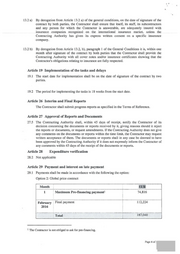 13.2 a) 13.2 b) By derogation from Article 13.2 a) of the general conditions, on the date of signature of the contract by both parties, the Contractor shall ensure that itself, its staff, its subcontractors and any person for which the Contractor is answerable, are adequately insured with insurance companies recognized on the international insurance market, unless the Contracting Authority has given its express written consent on a specific insurance company. By derogation from Article 13.2, b), paragraph 1 of the General Conditions it is, within one month after signature of the contract by both parties that the Contractor shall provide the Contracting Authority with all cover notes and/or insurance certificates showing that the Contractor's obligations relating to insurance are fully respected. Article 19 Implementation of the tasks and delays 19.1 The start date for implementation shall be on the date of signature of the contract by two parties. 19.2 The period for implementing the tasks is 18 weeks from the start date. Article 26 Interim and Final Reports The Contractor shall submit progress reports as specified in the Terms of Reference. Article 27 Approval of Reports and Documents 27.5 The Contracting Authority shall, within 45 days of receipt, notify the Contractor of its decision concerning the documents or reports received by it, giving reasons should it reject the reports or documents, or request amendments. If the Contracting Authority does not give any comments on the documents or reports within the time limit, the Contractor may request written acceptance of them. The documents or reports shall in any case be deemed to have been approved by the Contracting Authority if it does not expressly inform the Contractor of any comments within 45 days of the receipt of the documents or reports. Article 28 Expenditure verification 28.2 Not applicable Article 29 Payment and interest on late payment 29.1 Payments shall be made in accordance with the following the option: Option 2: Global price contract February Final payment 112,224 2016 | Total | The Contractor is not obliged to ask for pre-financing. Page 4 of!