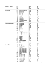 Frankfurt (Oder) GU 260 86 GU 23 0 ÜW 332 315 Havelland GU Dallgow-Döberitz 142 67 GU Falkensee 167 70 GU Falkensee 67 35 GU Friesack 80 43 GU Friesack 100 33 GU Nauen 257 150 GU Premnitz 83 0 GU Rathenow 225 143 GU Rathenow 87 52 GU Schönwalde-Glien 400 88 ÜW Rathenow 565 382 Dahme-Spreewald GU Bestensee 154 92 GU Bestensee 34 0 WV Golßen 114 89 GU Halbe 178 93 GU Halbe 327 126 WV Heidesee 19 6 GU Heidesee 42 25 WV Heidesee 38 31 GU Königs Wusterhausen 99 58 GU Königs Wusterhausen 86 22 GU Königs Wusterhausen 137 51 GU Lübben 83 38 WV Lübben 46 21 WV Luckau 120 45 GU Luckau 188 84 GU Teupitz 58 25 GU Unterspreewald 150 51 GU Waßmannsdorf 330 137 ÜW Lübben 252 236 Oder-Spree GU Beeskow 41 17 GU Bad Saarow 100 1 WV Beeskow 197 85 WV Eisenhüttenstadt 120 62 WV Eisenhüttenstadt 49 0 WV Eisenhüttenstadt 108 80 WV Eisenhüttenstadt 131 51 WV Eisenhüttenstadt 22 21 GU Erkner 87 48 GU Fürstenwalde 235 150 GU Fürstenwalde 110 66 WV Fürstenwalde 129 108 GU Fürstenwalde 183 116 GU Fürstenwalde 37 23 WV Grünheide 25 8 GU Steinhöfel 100 12