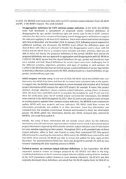MENOA Annual Narrative Report: 01.01.2019 - 31.12.2019 N TOS-EUTF-NOA-REG-03-01 In 2019, the MENOA team took over data entry on EUTF common output indicators from DG NEAR and IPs, at DG NEAR’s request. This work included: Disaggregation definitions for EUTF common output indicators. In 04 2018, the MENOA team had developed a spreadsheet of proposed shared technical definitions of disaggregation by age, gender, beneficiary type and service type for the 41 EUTF common indicators for Altai and as ameans of developing shared disaggregation definitions to support the indicators applying to alltthree EUTF windows. These were shared and further developed with Altai in November and December 2018. In January 2019, following several requests for additional meetings and discussion, the MENOA team refined the definitions again and shared them with Altai in an attempt to finalize the disaggregation and to share with DG DEVCO and DG NEAR. Due to a complex travel schedule and other priorities, Altai was not able to meet and discuss the proposed definitions in this period. MENOA then shared the proposed definitions and our approach to aggregation and disaggregation with DG NEAR on 13/02/19. DG NEAR agreed that the shared definitions for age, gender and beneficiary type were suitable and final. Shared definitions for service types were more challenging due to the different activities, objectives, priorities, and ways of working in each window. On 11/04/19, DG NEAR decided that we will not pursue a shared definition of service type further so that data collection could proceed in the NOA window based on a shared definition of age, gender, and beneficiary type only. AKVO template and data entry. At the end of 2018, DG NEAR asked that MENOA take over data entry into AKVO from them and from IPs to ensure more consistent data in the system. To support this, the MENOA team developed a custom template that included all of the basic project information AKVO requires for each EUTF project, for example, IP name, title, project abstract, strategic objectives, chosen common output indicators, among others. In January 2019, the team then used DOAs and LFs to populate this template for each IP and sent it to them for verification. Once the IP verified and/or corrected the information, the MENOA team entered it into AKVO throughout Q1 2019. After Q1 and as new projects came on board or existing projects updated their common output indicators, the MENOA team continued to update AKVO with new projects and new indicators. DG NEAR could then review the information periodically and publish it at their discretion. Some key information was excluded from the template (contractual, financial and location) to keep this information private. DG NEAR added this information directly into AKVO, reviewed data entered be MENOA, and could then publish it. Initially, this entry of basic information did not include actual values for the indicators themselves, since IPs had not yet reported values. Instead and as noted, it documented basic project information required by AKVO and the common output indicators each IP had chosen for cross-window reporting on their project. Throughout 2019, as IPs provided data on these output indicators either in their own format or using their customized DCT (the agreed, official format for reporting the data before AKVO entry), the MENOA team entered the data into AKVO. Once entered, DG NEAR was able to review and publish the data, again at their discretion. The aforementioned AKVO fact sheet was designed to provide IPs with an easy resource explaining the data reporting process to AKVO. Technical memos on common output indicator definitions. In late September, DG NEAR requested technical review on changes proposed by DG DEVCO and Altai to the long- established definitions of the 41 common output indicators (COls) used by all three windows of the EUTF (sometimes called common or cross-window indicators). DG DEVCO and Altai originally developed these definitions and asked that DG NEAR employ them for NOA IPs in 11