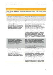 MENOA Annual Narrative Report 01.01.2019 Challenges and Solutions - 31.12.2019 N TO5-EUTF-NOA-REG-03-01 During 2019, the MENOA team encountered, and developed solutions to, the following project challenges: (ee 1 SJa7=12H5 Solutions 1. Insufficient project team capacity to meet the daily demand for technical support from project partners High demand from IPs for additional support on log frame alignment and data reporting coupled with unfamiliarity with MEL and how an MLS works, non-responsiveness to follow up, and/or non-incorporation of technical input and suggestions on log frames Inconsistent receipt of IP progress narrative reports and data for analysis in NOA Monitoring Reports and requests for inclusion of new reports piecemeal/after cut off dates Inconsistent information flows and communication between DG NEAR and MENOA regarding feedback on deliverables, IP projects’ contracting status, log frame finalisation or approval (with repercussions for DCTs), new project needs, and ad hoc requests Added an MEL Officer to increase project oversight and implementation capacity and replaced an outgoing Project Officer with a new, very strong and highly skilled one Continued to offer daily support to IPs and to initiate additional follow as a means of extending the strong, positive working relationships already established and to encourage increased communication flow. Developed a new approach to and resources for in- person MLS workshops that include review of what an MLS and how it works to deepen IP understanding of its purpose and uses for not only monitoring but for strengthening implementation and results. Produced a new workflow document to supplement the published 2017 guidelines and provide IPs with a short, step-by-step diagram of the alignment and reporting processes as well as roles and responsibilities of the IP, EUD, DG NEAR and the MENOA team in these processes Agreed with DG NEAR that they would share progress reports to MENOA on a rolling basis rather than delivering a large tranche at once to support regular analysis and efficient development of NOA Monitoring Reports. Set stricter, forward looking deadlines for receipt of IP progress reports and policy of including any received after deadline in the next report Implemented exchange of Contract Planning and Monitoring table to provide DG NEAR with detailed information on the status of each project twice/month on both the MENOA and DG NEAR side. Continued to hold regular, monthly phone calls plus often weekly ad hoc calls between the MENOA team lead and DG NEAR Programme Officer to increase communication and provide clear, up-to-date information on IPs and other project developments as well as to request feedback on delivered products. Increased touch point meetings to weekly with new Programme Officer after arrival in September 2019.