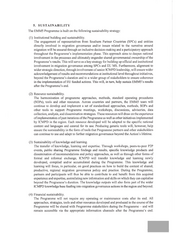 5. SUSTAINABILITY The EMMS5 Programme is built on the following sustainability strategy: (1) Institutional building and sustainability. The engagement of representatives from Southern Partner Countries (SPCs) and entities directly involved in migration govemance and/or issues related to the narrative around migration will be ensured through an inclusive decision-making and a participatory approach throughout the Programme’s implementation phase. This approach aims to deepen national involvement in the processes and ultimately engender shared governmental ownership ofthe Programme’s results. This will serve as a key strategy for building up official and institutional involvement in migration governance among SPCs and EU MS. Furthermore, alignment to wider strategic direction, through involvement of senior ICMPD leadership, will ensure wider acknowledgement ofresults and recommendations at institutional level throughout initiatives, beyond the Programme’s duration and to a wider group of stakeholders to ensure coherence in the implementation of EU funded actions. This will, in turn, help sustain EMMS5’s results after the Programme’s end. (2) Resource sustainability. The harmonisation of programme approaches, methods, standard operating procedures (SOPs), tools and other resources. Across countries and partners, the EMMS team will continue to develop and implement a set of standardised approaches, methods, SOPs and other tools to support Programme meetings, workshops, discussions, advisories, data collection, analysis, and dissemination strategies. These resources will draw on the experience ofimplementation of past iterations ofthe Programme as well as other initiatives implemented by ICMPD in the region. Each resource developed will be adapted to the specific national context and languages and catered for its use. Producing generic tools will, however, help ensure the sustainability in the form of tools that Programme partners and other stakeholders can continue to use and adapt to further migration governance beyond the Action’s lifetime. (3) Sustainability of knowledge and leaming. The transfer of knowledge, leaming and expertise. Through workshops, peers-to-peer P2P events, public sharing Programme findings and results, specific knowledge products and dissemination of recommendations and policy approaches, as well as through other forms of formal and informal exchange, ICMPD will transfer knowledge and leaming newly developed, compiled and/or accumulated during the Programme. This knowledge and learning will focus, in particular, on good practices on how to build the content of shared, productive, regional migration governance policy and practice. During the Programme, partners and participants will thus be able to contribute to and benefit from this acquired experience and expertise, assimilating new information and skills on which they can capitalise beyond the Programme’s duration. The knowledge outputs will also form part of the wider ICMPD knowledge base feeding into migration governance actions in the region and beyond. (4) Financial sustainability. The Programme will not require any operating or maintenance costs after its end. All approaches, strategies, tools and other resources developed and produced in the course of the Programme will be shared with Programme stakeholders during the Programme — and will remain accessible via the appropriate information channels after the Programme’s end.
