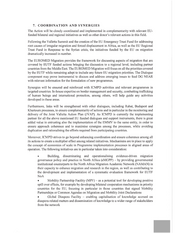 7. COORDINATION AND SYNERGIES The Action will be closely coordinated and implemented in complementarity with relevant EU- funded bilateral and regional initiatives as well as other donor’s relevant actions in this field. Following the Valletta Summit and the creation ofthe EU Emergency Trust Fund for addressing root causes of irregular migration and forced displacement in Africa, as well as the EU Regional Trust Fund in Response to the Syrian crisis, the initiatives funded by the EU on migration dramatically increased in number. The EUROMED Migration provides the framework for discussing aspects of migration that are covered by EUTF funded actions bringing the discussion to a regional level, including partner countries from the Middle East. The EUROMED Migration will focus on all the priorities covered by the EUTF while remaining adept to include any future EU migration priorities. The Dialogue component may prove instrumental to discuss and address emerging issues to feed DG NEAR with relevant information for the formulation ofnew programmes. Synergies will be ensured and reinforced with ICMPD activities and relevant programmes in targeted countries. In-house expertise on border management and security, combatting trafficking of human beings and international protection, among others, will help guide any activities developed in these areas. Furthermore, links will be strengthened with other dialogues, including Rabat, Budapest and Khartoum processes, to ensure complementarity of actions and in particular in the monitoring and delivery of the Joint Valletta Action Plan (JVAP). As ICMPD is currently the implementing partner for all the above mentioned EU funded dialogues and support instruments, there is great added value in entrusting also the implementation of the EMMV to the same entity, in order to ensure approach coherence and to maximise synergies among the processes, while avoiding duplication and rationalising the efforts required from participating countries. Moreover, ICMPD strives to go beyond enhancing coordination and ensure coherence among all its actions to create a multiplier effect among related initiatives. Mechanisms are in place to apply the concept of economies of scale in Programme implementation processes in aligned areas of operation. The following initiatives are in particular taken into consideration: ° Building, disseminating and operationalising cvidence-driven migration govemance policy and practice in North Africa (eMGPP) — by providing governmental institutional counterparts to the North Africa Migration Academic Network (NAMAN) in their capacity to enhance migration and research in the region, as well as contributing to the development and implementation of a systematic evaluation framework for EUTF NoA . Mobility Partnership Facility (MPF) - as a potential tool for developing positive spill over effects, for example by developing bilateral cooperation mechanisms in priority countries for the EU, focusing in particular in those countries that signed Mobility Partnerships or Common Agendas on Migration and Mobility Joint Declarations . Global Diaspora Facility — enabling capitalisation of knowledge accrued on diaspora-related matters and dissemination of knowledge to a wider range of stakeholders from the network