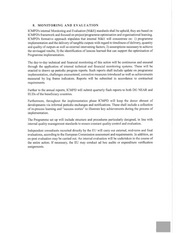 8. MONITORING AND EVALUATION ICMPD's internal Monitoring and Evaluation (M&E) standards shall be upheld; they arc based on ICMPD's framework and focused on project/programme optimisation and organisational learning. ICMPD's formative approach stipulates that internal M&E will concentrate on: 1) programme implementation and the delivery oftangible outputs with regard to timeliness of delivery, quantity and quality of outputs as well as external intervening factors; 2) assumptions necessary to achieve the envisaged results; 3) the identification of lessons learned that can support the optimisation of Programme implementation. The day-to-day technical and financial monitoring of this action will be continuous and ensured through the application of internal technical and financial monitoring systems. These will be enacted to drawn up periodic progress reports. Such reports shall include update on programme implementation, challenges encountered, corrective measures introduced as well as achievements measured by log frame indicators. Reports will be submitted in accordance to contractual requirements. Further to the annual reports, ICMPD will submit quarterly flash reports to both DG NEAR and EUDs ofthe beneficiary countries. Furthermore, throughout the implementation phase ICMPD will keep the donor abreast of developments via informal periodic exchanges and notifications. These shall include a collection of in-process learning and “success stories” to illustrate key achievements during the process of implementation. The Programme set up will include structure and procedures particularly designed, in line with internal quality management standards to ensure constant quality control and evaluation. Independent consultants recruited directly by the EU will carry out external, mid-term and final evaluations, according to the European Commission assessment and requirements. In addition, an ex-post evaluation may be carried out. An internal evaluation will be undertaken in the course of the entire action. If necessary, the EU may conduct ad hoc audits or expenditure verification assignments.