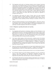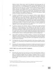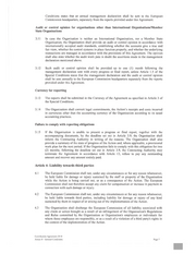 Conditions states that an annual management declaration shall be sent to the European Commission headquarters, separately from the reports provided under this Agreement. Audit or control opinion for organisations other than International Organisations/Member State Organisations 3.11 3.12 In case the Organisation is neither an International Organisation, nor a Member State Organisation, the Organisation shall provide an audit or control opinion in accordance with internationally accepted audit standards, establishing whether the accounts give a truc and fair view, whether the control systems in place function properly, and whether the underlying transactions are managed in accordance with the provisions of this Agreement. The opinion shall also state whether the audit work puts in doubt the assertions made in the management declaration mentioned above. Such audit or control opinion shall be provided up to one (1) month following the management declaration sent with every progress or final report, unless Article 1.5 of the Special Conditions states that the management declaration and the audit or control opinion shall be sent annually to the European Commission headquarters separately from the reports provided under this Agreement. Currency for reporting 3.13 3.14 The reports shall be submitted in the Currency of the Agreement as specified in Article 3 of the Special Conditions. The Organisation shall convert legal commitments, the Action’s receipts and costs incurred in currencies other than the accounting currency of the Organisation according to its usual accounting practices. Failure to comply with reporting obligations 3.15 If the Organisation is unable to present a progress or final report, together with the accompanying documents, by the deadline set out in Article 3.9, the Organisation shall inform the Contracting Authority in writing of the reasons. The Organisation shall also provide a summary of the state of progress ofthe Action and, where applicable, a provisional work plan for the next period. If the Organisation fails to comply with this obligation for two (2) months, following the deadline set out in Article 3.9, the Contracting Authority may terminate the Agreement in accordance with Article 13, refuse to pay any outstanding amount and recover any amount unduly paid. Article 4: Liability towards third parties 4.1 42 4.3 The European Commission shall not, under any circumstances or for any reason whatsoever, be held liable for damage or injury sustained by the staff or property of the Organisation while the Action is being carried out, or as a consequence of the Action. The Europcan Commission shall not therefore accept any claim for compensation or increase in payment in connection with such damage or injury. The European Commission shall not, under any circumstances or for any rcason whatsocver, be held liable towards third parties, including liability for damage or injury of any kind sustained by them in respect of or arising out ofthe implementation ofthe Action. The Organisation shall discharge the European Commission of all liability associated with any claim or action brought as a result of an infringement of the Organisation's Regulations and Rules committed by the Organisation or Organisation's employees or individuals for whom those employees are responsible, or as a result ofa violation of a third party's rights in the context of the implementation of the Action. Contribution Agreement 2018 Annex II - General Conditions Page 7