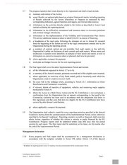 2.5 2.6 2.7 The Organisation shall notify the Contracting Authority and the European Commission without delay of any substantial change in the rules, procedures and systems applied in the implementation of the Action. This obligation concerns in particular (1) substantial changes affecting the pillar assessment undergone by the Organisation or (ii) those that may affect the conditions for eligibility provided for in the applicable legal instruments of the EU. The Parties shall use their best efforts to resolve amicably any issues resulting from such changes. The Contracting Authority reserves the right to adopt or require additional measures in response to such changes. In the event an agreement on such measures or other solutions cannot be reached between the Parties, either Party may terminate the Agreement in accordance with Article 13.3. The Organisation shall promote the respect of human rights and respect applicable environmental legislation including multilateral environmental agreements, as well as internationally agreed core labour standards. The Organisation shall not support activities that contribute to money laundering, terrorism financing, tax avoidance, tax fraud or tax evasion. Where the European Commission is not the Contracting Authority, it shall not be a party to this Agreement, with the consequence that rıghts and obligations arc conferred upon it only where explicitly stated. This is without prejudice to the European Commission's role in promoting a consistent interpretation of the terms of this Agreement. Article 3: Obligations regarding information and reporting General issues 3.1 3.2 3.3 3.4 3.5 3.6 The Organisation shall provide the Contracting Authority with full information on the implementation of the Action. To that end, the Organisation shall include in Annex I a work plan at least for the first year of the Implementation Period (or the whole Implementation Period where it is less than one year). The Organisation shall submit to the Contracting Authority progress report(s) and a final report in accordance with the provisions below. These reports shall consist of a narrative part and a financial part. Every report, whether progress or final, shall provide a complete account of all relevant aspects of the implementation of the Action for the period covered. The report shall describe the implementation of the Action according to the activities envisaged in Annex I as well as the degree of achievement of its Results (Outcomes or Outputs) as measured by corresponding Indicators. The report shall be drafted in such a way as to allow monitoring of the objective(s), the means envisaged and employed. The level of detail in any report shall match that of Annexes land IH. Where the overall action of the Organisation lasts longer than the Implementation Period of this Agreement, the Contracting Authority may request - in addition to the final reports to be submitted pursuant to Article 3.8 - the final reports of the overall action, once available. Any alternative or additional reporting requirement shall be set out in the Special Conditions. The Contracting Authority may request additional information at any time, providing the reasons for that request. Subject to the Organisation’s Regulations and Rules, such information shall be supplied within thirty (30) days of receipt of the request. The Organisation may submit a duly motivated request to extend the 30-day deadline. The Organisation shall notify the Contracting Authority without delay of any circumstances likely to adversely affect the implementation and management of the Action, or to delay or Jeopardise the performance of the activities. Content of the reports Contribution Agreement 2018 Annex II - General Conditions Page 5
