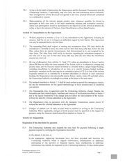 10.3 10.4 In line with the spirit of partnership, the Organisation and the European Commission (and the Contracting Authority, if applicable), may also carry out joint monitoring and/or evaluation. Such arrangements will be discussed and agreed in due time, planned ahead and completed in a collaborative manner. Representatives of the relevant partner country may, whenever possible, be invited to participate at their own costs in the main monitoring missions and evaluation exercises, unless such participation would be detrimental to the objectives ofthe Action or threaten the safety or harm the interests of Partners, Grant Beneficiaries or Final Beneficiaries. Article 11: Amendment to the Agreement 11.1 11.2 11.3 11.4 11.5 11.6 11.7 Without prejudice to Articles 11.3 to 11.7, any amendment to this Agreement, including its annexes, shall be set out in writing in an addendum signed by both Parties. This Agreement can only be amended before the End Date. The requesting Party shall request in writing any amendment thirty (30) days before the amendment is intended to enter into force and no later than thirty (30) days before the End Date, unless there are special circumstances, duly demonstrated by it, and accepted by the other Party. The other Party shall notify its decision regarding the amendment proposed in due time and in any case no later than thirty (30) days after the date when the amendment request was received. By way of derogation from Articles I1.1 and 11.2, where an amendment to Annex I and/or Annex III does not affect the main purpose of the Action, such as its objectives, strategy and priority areas, and the financial impact is limited to a transfer within a single budget heading, including cancellation or introduction of an item, or a transfer between budget headings involving a variation (as the case may be in cumulative terms) of 25 % or less of the amount originally entered (or as amended by a written addendum) in relation to each concerned heading, the Organisation may unilaterally amend Annex I and/or Annex III and shall inform the Contracting Authority accordingly in writing, at the latest in the next report. The method described in Article 11.3 shall be used neither to amend the contingency reserve, the rate for remuneration, nor the agreed methodology or fixed amounts/rates of simplified cost options, The Organisation may, in agreement with the Contracting Authority, change Outputs, the Indicators and their related targets, baselines and sources of verification described in Annex ] and in the logical framework if the change does not affect the main purpose of the Action, without the need for a formal addendum to the Agreement. The Organisation may, in agreement with the European Commission, amend Annex VI without the need for a formal addendum to the Agreement. Changes of address and of bank account shall be notified in writing to the Contracting Authority. Where applicable, changes of bank account must be specified in the request for payment, using the financial identification form attached as Annex IV. Article 12: Suspension Suspension of the time limit for payment 12.1 The Contracting Authority may suspend the time limit for payment following a single payment request by notifying the Organisation that either: a) the amount is not due; or b) the appropriate supporting documents have not been provided and therefore the Contracting Authority needs to request clarifications, modifications or additional information to the narrative or financial reports. Such clarifications or additional information may notably be requested by the Contracting Authority if it has doubts about Contribution Agreement 2018 Annex IT - General Conditions Page ||