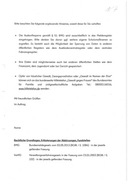 Sollte eine Anhörung zu vorliegenden Anfragen mangels Zustellbarkeit nicht möglich sein,