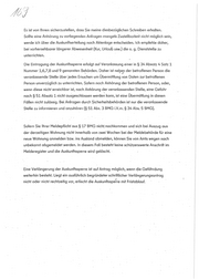 Gelegenheit, sich innerhalb von 14 Tagen zu äußern und ggf. Gründe darzulegen, die im vorliegenden Fall einer Auskunftserteilung entgegenstehen. . Kommen Sie dieser Aufforderung nicht oder nicht hin/,eichend nach und das Auskunftsersuchen steht offensichtlich nicht in Zusammenhang mit der geltend gemachten Gefährdung, ist in der Regel davon auszugehen, dass die Auskunft zu erteilen ist. Es ist von Ihnen sicherzustellen, dass Sie meine diesbezüglichen Schreiben erhalten. Sollte eine Anhörung zu vorliegenden Anfragen mangels ZuStellbarkeit nicht möglich sein, werde ich über die Auskunftserteilung nach Aktenlage entscheiden. Ich empfehle daher, bei vorhersehbarer längerer Abwesenheit (Kur, Urlaub usw.) die o. g. Dienststelle zu unterrichten. . ■ Sofern Sie Ihrer Meldepflicht aus § 17 BMG nicht nachkommen und sich bei Auszug aus der derzeitigen Wohnung nicht innerhalb von. zwei Wochen bei der Meldebehörde für eine neue Wohnung anmelden bzw. ins Ausland abmelden/können Sie von Amts wegen nach unbekannt abgemeldet werden. In diesem Falf besteht keine schützenswerte Anschrift im Melderegister und die Auskunftssperre wird gelöscht. Eine erneute Verlängerung der Auskunftssperre ist auf Antrag möglich, wenn die Gefährdung weiterhin besteht. Liegt ein ausführlich begründeter schriftlicher Verlängerungsantrag nicht oder nicht rechtzeitig vor, erlischt die Auskunftssperre mit Fristablauf. Rechtsbehelfsbelehrung Gegen diesen Bescheid ist der Widerspruch zulässig. Er ist innerhalb eines Monats schriftlich oder zur Niederschrift bei dem Landesamt für Bürger- und Ordnungsangelegenheiten, Abteilung Personenstands- und Einwohnerwesen, Zentrale Einwohnerangelegenheiten, 10969 Berlin (Kreuzberg), Friedrichstr. 219, zu erheben. Er kann auch elektronisch mit einer qualifizierten elektronischen Signatur nach dem Signaturgesetz versehen unter der Adresse post.meldeangelegenheiten(5)labo.berlin.de eingelegt werden. Es wird darauf hingewiesen, dass die Widerspruchsfrist nur dann gewahrt ist, wenn der Widerspruch innerhalb dieser Frist eingegangen ist. Bitte beachten Sie folgende ergänzende Hinweise, soweit diese für Sie zutreffen