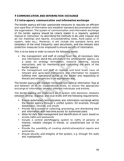 7 COMMUNICATION AND INFORMATION EXCHANGE 7.1 Intra-agency communication and information exchange The border agency will take appropriate measures to regulate an efficient and rapid flow of information and establish standard documentation within the organisation. The system of communication and information exchange of the border agency should be clearly stated in a regularly updated manual or instruction, by describing the methods to be used (regular and ad hoc meetings and reports, circulars/briefing notes, hard-copies or IT system, radio etc.). Moreover, it will include the standard forms and templates of the most frequently used documents, and the relevant data protection measures to be employed to ensure security of information. This is to be done in order to ensure the following needs: «e the management and staff at central level has all necessary data and information about the activities of the whole border agency, as a basis for strategy formulation, resource planning, issuing instructions, and for monitoring and controlling the work of the border agency «e the management and staff at regional and local levels have all relevant and up-to-date instructions and information for properly fulfilling their operational duties at the border and responding to threats and emergencies in an appropriate way. The border agency will regulate horizontal and vertical information flow at and between all of its organisational levels, to ensure the appropriate exchange of information between different individuals and entities. The border agency will implement an IT system with electronic networks between central, regional, and local levels with the following requirements: «e Ensure automated communication and information exchange within the border agency through a unified system, for example, through database(s), intranet, and emails « Provide for a system of collecting, processing, and distributing data and information with real-time access for authorised users « Allow for data flow management and identification of users based on access rights and passwords « Include a central alert/flagging system to notify of persons of interest, notable changes in trends, or unauthorised use of the system «e Provide the possibility of creating statistical/analytical reports and summaries «e Ensure security and integrity of the system, e.g. through fire walls and cryptography 46