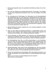Frage 3: Die Unterhaltung der Zufahrtswege, der Winterdienst und die Betriebsfähigkeit der Feuerlöschbrunnen ist in der Regel durch die Betreiberfirma der WEA zu gewährleis- ten. Da die WEA häufig ihren Besitzer wechseln, ist es für die betroffenen Gemein- den oft unmöglich die Verantwortlichen zu erreichen. Wie will die Landesregierung sicherstellen, dass bei technischen Problemen, Bränden oder Unfällen Verantwortli- che für diese WEA erreichbar sind? Warum werden an den Anlagen bisher keine ausreichenden Hinweise auf die Verantwortlichen angebracht, so wie es sonst bei technischen Anlagen üblich ist? zu Frage 3: In der LSTE-Broschüre wird unter Punkt 2.3 auf die Einsatzvorbereitung für Einsätze an WKA und die Zuordnung zu den Betreibern mittels einer einmaligen Ziffern- und Buchstabenkombination über der Zugangstür eingegangen. Weiterhin ist für den Ereignisfall eine ständige Erreichbarkeit der WKA- Überwachungszentrale durch die zuständige Regionalleitstelle gegeben. In der WKA- Überwachungszentrale liegen die erforderlichen Informationen vor (Typ, Hersteller, Betreiber usw.). Parallel haben die Regionalleitstellen Zugriff auf eine WKA- Datenbank und können zur Koordinierung von Einsätzen bei Unfällen oder Bränden eine GIS-Anwendung der Landesvermessung und Geobasisinformation Brandenburg (LGB), den Energie- und Klimaschutzatlas Brandenburg verwenden (http://isk.geobasis-bb.de/EKS-Atlas/index.html). Frage 4: Welche Maßnahmen werden umgesetzt bzw. sind zukünftig angedacht um diese Si- tuation zu verbessern? zu Frage 4: Gemäß § 3 Absatz 1 Brandenburgisches Brand- und Katastrophenschutzgesetz (BbgBKG) haben die Träger des örtlichen Brandschutzes und der örtlichen Hilfeleis- tung eine den örtlichen Verhältnissen entsprechende leistungsfähige Feuerwehr zu unterhalten. Befinden sich WKA im Zuständigkeitsbereich des Trägers, so ist die ört- lich zuständige Feuerwehr auch hinsichtlich des Umgangs mit WKA zu schulen. Schulungen können beispielweise unter Nutzung des Leitfadens WKA im Wald (Nummer 3.2 Brandschutz) sowie der LSTE-Broschüre erfolgen. Frage 5: Wenn es durch WEA auf Nachbargrundstücken zu Brandschäden kommt, wer haftet für diese Schäden? Nach Auskunft einiger Versicherungen regulieren die Versicherer keine Schäden, die an Nachbargrundstücken entstehen. Zu Frage 5: Nach dem Verursacherprinzip haftet der Eigentümer/Betreiber der WKA. Frage 6: Sind die Betreiber von WEA gesetzlich zum Abschluss einer Betriebshaftpflichtversi- cherung verpflichtet? Wenn Ja: welchen Versicherungsumfang und welche De- ckungssummen muss diese Versicherung laut Gesetz mindestens aufweisen?
