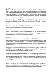 zu Frage 2: Solange die Asylbewerberinnen, Asylbewerber und Flüchtlinge in der EAE unterge- bracht sind, ist die Zentrale Ausländerbehörde (ZABH) zuständig. Die Entscheidung über die erforderliche Behandlung und den erforderlichen Behandlungsort wird durch die dortigen Ärztinnen und Ärzte getroffen. Das für die ZABH tätige Fachpersonal der Unterkünfte unterstützt den Gang oder den Transport zum Arzt oder Krankenhaus oder ruft im Notfall den Rettungsdienst. Nach Verteilung aus der EAE obliegt die medizinische Versorgung für die jeweils aufgenommenen Personen den Kommunen; auf die Antwort zur Frage 1 wird ver- wiesen. Die Leistungsverpflichtung der ZABH und der Kommunen für die jeweils aufgenom- menen Personen besteht auch an Sonn- und Feiertagen. Frage 3: Wer übernimmt in solchen Fällen die Kosten für den Bereitschaftsdienst bzw. Notarzt- und Rettungssanitätereinsatz? Wie ist die Abrechnung dieser Kosten durch den Erbringer der Behandlungsleistungen geregelt? zu Frage 3: Mit Inkrafttreten der Änderungen des AsylbLG zum 1. März 2015 ist der Anspruch auf Ersatz der erforderlichen Leistungen der medizinischen Notversorgung nach §§ 4 und 6 AsylbLG nunmehr ausdrücklich in § 6a AsylbLG geregelt. Demnach können Leistungserbringende innerhalb angemessener Frist die Erstattung ihrer Aufwendun- gen beantragen. Solange sich die Leistungsberechtigten nach dem AsylbLG in der EAE aufhalten, ist die ZABH als Leistungsträger gemäß § 1 Absatz 2 LAufnG auch für die Kostenerstat- tung der medizinischen Versorgung in Notfällen zuständig. Sobald die Asylbewerberinnen, Asylbewerber und Flüchtlinge in den Kommunen un- tergebracht sind, ist der Erstattungsanspruch an das zuständige Sozialamt zu rich- ten. Das galt auch schon vor dem 1. März 2015: hierfür wurde § 25 des Zwölften Bu- ches Sozialgesetzbuch (SGB XII) in analoger Anwendung als Anspruchsgrundlage herangezogen. Frage 4: Wie möchte die Landesregierung in Zukunft gewährleisten, dass Asylbe- werberinnen, Asylbewerber und Flüchtlinge an Sonn- und Feiertagen bei Vorliegen akuter Erkrankungen und Schmerzzuständen medizinisch behandelt werden?