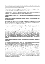 Namens der Landesregierung beantwortet die Ministerin für Wissenschaft, For- schung und Kultur die Kleine Anfrage wie folgt: Frage 1: Ist der Landesregierung bekannt, welche Funktionen und Aufgaben die zu- künftige kommunale Betreibergesellschaft übernehmen soll? Frage 2: Welche jährlichen Folgekosten entstehen durch die Betreibergesellschaft (Personal- und Betriebskosten) und wie werden diese refinanziert? Frage 3: Wie viel Personal soll in der zukünftigen Betreibergesellschaft beschäftigt werden? Frage 4: Nach welchen Entgeltgruppen sollen die öffentlich auszuschreibenden Stel- len vergütet werden? Frage 5: Wurden Überlegungen angestellt, die Aufgaben der Betreibergesellschaft für private Firmen auszuschreiben? Wenn ja, welche Überlegungen führten dazu, kein privates Unternehmen in Betracht zu ziehen? zu Fragen 1-5: Vertreterinnen und Vertreter der Stadt Altlandsberg haben der unte- ren Kommunalaufsichtsbehörde (uKAB) in den Jahren 2014 und 2015 bei unter- schiedlichen Gelegenheiten mündlich Überlegungen zur Gründung einer Betreiber- gesellschaft vorgestellt. Die künftige Gesellschaft soll danach Aufgaben im Zusam- menhang mit der Vermarktung und Bewirtschaftung der Liegenschaften des Schlossguts Altlandsberg wahrnehmen. Darüber hinaus soll sie Stadtmarketing für die Stadt Altlandsberg betreiben. Nach einer Anschubfinanzierung soll die Gesell- schaft sich selber tragen und anschließend Pacht oder Miete an die Stadt zahlen. Eine Quantifizierung der Beträge ist der uKAB nicht bekannt. Darüber hinausgehen- de Erkenntnisse besitzt die Landesregierung nicht. Die Stadt Altlandsberg ist gegen- über der Kommunalaufsichtsbehörde hinsichtlich Planungen auch nicht berichts- pflichtig. Frage 6: Welche Fördermittel erhält die Stadt Altlandsberg und/oder die Betreiberge- sellschaft? zu Frage 6: Die Stadt Altlandsberg erhielt bzw. erhält seit dem Jahr 2010 Fördermit- tel aus den Verantwortungsbereichen folgender Landesministerien: MIL: Aus dem Bund-Länder-Programm Städtebaulicher Denkmalschutz sind Bundes- und Landesmittel (B/L) in Höhe von 4,765 Mio. Euro zugunsten des Sanierungsge- bietes „Historischer Stadtkern“ und in Höhe von 0,25 Mio. Euro zugunsten des Sanie- rungsgebietes „Historisches Scheunenviertel“ geflossen bzw. bis einschl. 2017 bewil- ligt. Zuwendungsempfängerin ist die Stadt, die Fördermittel haben eine 25-jährige Zweckbindungsfrist. Die insgesamt seit 1992 laufende Förderung des Sanierungsge- bietes „Historischer Stadtkern“ umfasste unter anderem die Sanierung des Gutshau- ses (972.026,40 Euro B/L), den Ankauf der Schlosskirche (121.385,60 Euro B/L), die Sanierung der Schlosskirche (Fertigstellung Mai 2015 – voraussichtlich 1.600.000 Euro B/L) sowie die Sicherung des Brau- und Brennhauses (Fertigstellung voraus- sichtlich 2015 – 343.372,64 Euro B/L) auf dem Schlossareal. Eigentümerin dieser Gebäude ist die Stadt Altlandsberg.