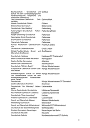 Grundschule Nord Finsterwalde Finsterwalde Grundschule Keune Forst (Lausitz) Oberschule "Ulrich von Hutten" Frank- Frankfurt (Oder) furt (Oder) Oberschule "Heinrich v. Kleist" Frank- Frankfurt (Oder) furt (Oder) Städtisches Gymnasium Carl Friedrich Frankfurt (Oder) Gauß Mathematisch- naturwissenschaftlich-technische Spe- zialschule und MINT-Excellence-Center Oberschule Fredersdorf Fredersdorf-Vogelsdorf Grundschule Friedland Friedland Sonnengrundschule Fürstenwalde Fürstenwalde/Spree Spree-Oberschule Fürstenwalde Fürstenwalde/Spree Grundschule " Kinder von Golzow" Golzow Grund-und Oberschule Schenkenland Groß Köris Friedensschule Grundschule Guben Grundschule Heidesee Heidesee/OT Friedersdorf Grundschule "Theodor Fontane" Hen- Hennigsdorf nigsdorf Grundschule Nord Hennigsdorf Hennigsdorf Friedrich-Wilhelm-Gymnasium Königs Wusterhausen Grundschule Zeesen Königs Wusterhausen/OT Zeesen Grundschule Königs Wusterhausen/OT Zernsdorf Goethe-Grundschule Kyritz Kyritz Liuba-Grundschule Lübben(Spreewald) Jenaplan-Grundschule Lübbenau/Spreewald Friedrich-Ludwig-Jahn-Grundschule Luckenwalde Marie-Curie-Gymnasium Ludwigsfelde Ludwigsfelde Landkreis Teltow-Fläming Grund- und Oberschule Massen Massen-Niederlausitz Kleine Grundschule Großwudicke Milower Land/OT Großwudicke Grundschule Töpchin Mittenwalde/OT Töpchin Europaschule am Fließ Schildow Mühlenbecker Land Käthe-Kollwitz-Grundschule Mühlen- Mühlenbecker Land/OT Mühlenbeck beck Grund- und Oberschule Müllrose Müllrose Oberschule Müncheberg Müncheberg Grund- und Oberschule "Dr. Georg Graf Nauen von Arco" Oberschule "Alexander Puschkin" Neu- Neuruppin ruppin Oderbruch-Oberschule Neutrebbin Neutrebbin Kleine Grundschule Fürstenwerder Nordwestuckermark/OT Fürstenwer- der