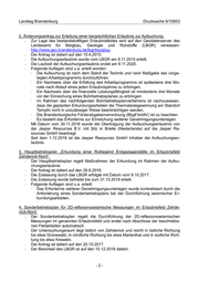 Landtag Brandenburg Drucksache 6/10853 2. Änderungsantrag zur Erteilung einer bergrechtlichen Erlaubnis zur Aufsuchung: - Zur Lage des bestandskräftigen Erlaubnisfeldes wird auf den Geodatenserver des Landesamt für Bergbau, Geologie und Rohstoffe (LBGR) verwiesen: http://www.geo.brandenburg.de/lbgr/bergbau - Der Antrag ist datiert auf den 15.4.2015. - Die Aufsuchungserlaubnis wurde vom LBGR am 9.11.2015 erteilt. - Die Laufzeit der Aufsuchungserlaubnis endet am 9.11.2020. - Folgende Auflagen sind u.a. erteilt worden: · Die Aufsuchung ist nach dem Stand der Technik und nach Maßgabe des vorge- legten Arbeitsprogramms durchzuführen. · Ein Nachweis über die Erfüllung des Arbeitsprogramms ist spätestens drei Mo- nate nach Ablauf eines jeden Erlaubnisjahres zu erbringen. · Ein Nachweis über die finanzielle Leistungsfähigkeit ist mindestens drei Monate vor der Einreichung eines Bohrbetriebsplanes zu erbringen. · Im Rahmen des nachfolgenden Bohrbetriebsplanverfahrens ist nachzuweisen, dass die geplanten Erkundungsarbeiten die Thermalsolegewinnung am Standort Templin nicht in unzulässiger Weise beeinträchtigen werden. · Die Brandenburgische Förderabgabenverordnung (BbgFördAV) ist zu beachten. · Es besteht das Erfordernis zur Einreichung weiterer Genehmigungsunterlagen. - Mit Datum vom 30.11.2016 wurde die Übertragung der Aufsuchungserlaubnis von der Jasper Resources B.V. mit Sitz in Brielle (Niederlande) auf die Jasper Re- sources GmbH beantragt. - Seit dem 1.12.2016 ist die Jasper Resources GmbH Inhaber der Aufsuchungser- laubnis. 3. Hauptbetriebsplan „Erkundung einer Rotliegend Erdgaslagerstätte im Erlaubnisfeld Zehdenick-Nord“: - Der Hauptbetriebsplan regelt Maßnahmen der Erkundung im Rahmen der Aufsu- chungserlaubnis - Der Antrag ist datiert auf den 26.8.2016. - Die Zulassung durch das LBGR erfolgte mit Datum vom 9.10.2017. - Die Zulassung wurde befristet bis zum 31.10.2019 erteilt. - Folgende Auflagen sind u.a. erteilt: · Das Erfordernis weiterer Genehmigungsunterlagen wurde konkretisiert durch die Anforderung eines Sonderbetriebsplans bei der Durchführung seismischer Er- kundungsarbeiten. 4. Sonderbetriebsplan für 2D-reflexionsseismische Messungen im Erlaubnisfeld Zehde- nick-Nord: - Der Sonderbetriebsplan regelt die Durchführung der 2D-reflexionsseismischen Messungen im genannten Erlaubnisfeld und endet nach Abschluss der beschriebe- nen Feldarbeiten automatisch. - Der Untersuchungsraum liegt östlich von Zehdenick und reicht in östliche Richtung bis etwa Grünewald, in nördliche Richtung bis etwa Marienthal und in südliche Rich- tung bis etwa Krewelin. - Der Antrag ist datiert auf den 20.10.2017. - Der Bescheid des LBGR ist auf den 10.12.2018 datiert. -2-