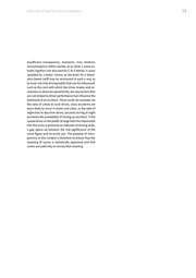 Areas for action:the state of research 33 Insufficient transparency, moreover, may reinforce misconceptions within society as to what a score ac- tually signifies (see also section C.III.3 below). A score awarded by a motor insurer as the basis for a telem- atics-based tariff may be structured in such a way as to cover not only driving habits that can be influenced, such as the care with which the driver brakes and ac- celerates or observes speed limits, but also factors that are not related to driver performance but influence the likelihood of an accident. These could, for example, be the ratio of urban to rural drives, since accidents are more likely to occur in towns and cities, or the ratio of night-time to day-time drives, because driving at night increases the probability of having an accident. If the scored driver or the public at large have the impression that the score is primarily an indicator of driving skills, a gap opens up between the real significance of the score figure and its social use. The purpose of trans- parency in this context is therefore to ensure that the meaning of scores is realistically appraised and that scores are used only to convey that meaning.