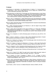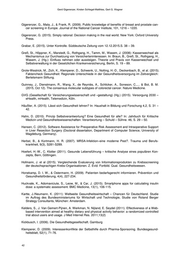 Gerd Gigerenzer, Kirsten Schlegel-Matthies, Gert G. Wagner V Literatur Aguilar-Martínez, A., Solé-Sedeño, J. M., Mancebo-Moreno, G., Medina, F. X., Carreras-Collado, R., & Saigí-Rubió, F. (2014). Use of mobile phones as a tool for weight loss: a systematic review. Journal of telemedicine and telecare, 20(6), 339-349. AOK-Bundesverband und WIdO (2014). Pressemappe des AOK-Bundesverbandes und des Wissen- schaftlichen Instituts der AOK (WIdO) zur Veröffentlichung des AOK-Krankenhaus-Reports 2014 am 21.1.2014: Klauber/Geraedts/Friedrich/Wasem (Hrsg.): Krankenhaus-Report 2014; Schwer- punkt: Patientensicherheit. Schattauer-Verlag (Stuttgart), ISBN-13: 978-3-7945-2972-8 Badura, B., Hart, D., Schellschmidt, H. (1999): Bürgerorientierung des Gesundheitswesens: Selbstbe- stimmung, Schutz und Beteiligung [Gutachten im Auftrag des Ministeriums für Arbeit, Gesundheit und Soziales des Landes Nordrhein-Westfalen], Baden- Baden. Badura, B. (2004): Aktivierender Staat und aktive Bürgergesellschaft im deutschen Gesundheitswesen, Soz.-Präventivmed. 49, S. 152–160. Baier, J. (2004). Informationsmanagement und -Recherche. In: Jähn KU, Nagel E (Hrsg) e-Health. Springer, Berlin Heidelberg New York. Beivers, A. (2014). Was ist Gesundheit und wer soll sie erhalten? In: S. Harzog (Hg.). Betriebliche Gesundheitsförderung. Wiesbaden, S. 13 – 21.Bekker, H. L., Hewison, J., & Thornton, J. G. (2003). Understanding why decision aids work: linking process with outcome. Patient Education and Coun- seling, 50(3), 323-329. Berwick, D. M., & Hackbarth, A. D. (2012). Eliminating waste in US health care. Jama, 307(14), 1513- 1516. Bilger, F., Gnahs, D., Hartmann, J., & Kuper, H. (Eds.). (2013). Weiterbildungsverhalten in Deutsch- land: Resultate des Adult Education Survey 2012. Gütersloh: Bertelsmann. BinDhim, N. F., Freeman, B., & Trevena, L. (2015). Pro-smoking apps: where, how and who are most at risk. Tobacco Control, 24(2), 159-161. BinDhim, N. F., Naicker, S., Freeman, B., McGeechan, K., & Trevena, L. (2014). Apps Promoting Illicit Drugs - A Need for Tighter Regulation?. Journal of Consumer Health On the Internet, 18(1), 31-43. Braun, B., & Marstedt, G. (2014). Partizipative Entscheidungsfindung beim Arzt: Anspruch und Wirk- lichkeit. In: Böcken J, Braun B, Meierjürgen R (Hrsg.), Gesundheitsmonitor 2014, 107–131. Briesen, D. (2010). Das gesunde Leben. Ernährung und Gesundheit seit dem 18. Jahrhundert, Frank- furt am Main Chassin, M. R., & Galvin, R. W. (1998). The urgent need to improve health care quality: Institute of Medicine National Roundtable on Health Care Quality. Jama, 280, 11, 1000-1005. Chou, R., Croswell, J. M., Dana, T., Bougatsos, C., Blazina, I., Fu, R.,... & Rugge, J. B. (2011). Screening for prostate cancer: a review of the evidence for the US Preventive Services Task Force. Annals of Internal Medicine, 155(11), 762-771. Christl, W. (2014): Kommerzielle digitale Überwachung im Alltag. Erfassung, Verknüpfung und Ver- wertung persönlicher Daten im Zeitalter von Big Data: Internationale Trends, Risiken und Heraus- forderungen anhand ausgewählter Problemfelder und Beispiele.; Studie im Auftrag der Bundesar- beitskammer, Wien Couzin-Frankel, J. (2015). Trust me, I’m a Medical Researcher. Science, 347(6221), 501-503. 40