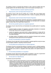 The Advisory Council notes that the rudimentary approaches to regulating algorithms set out