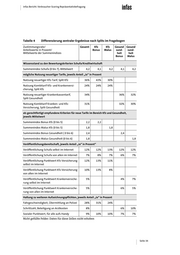 Tabelle 4 Differenzierung zentraler Ergebnisse nach Splits im Fragebogen
