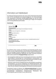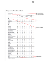 Der vorliegende Tabellenband stellt die detaillierten Befragungsergebnisse in Form von Häufigkeitsauszählungen und Kreuztabellen vor. Dabei wird jede Frage auf zwei Seiten dokumentiert (A/B). In den Kopfzeilen sind die gewichteten Wer- te in Zeilenprozenten dargestellt. In den Untergruppen (linke Spalte) werden ebenfalls in Zeilenprozenten die Ergebnisse für die jeweilige Teilgruppe angege- ben. Alle Prozentangaben erfolgen ganzzahlig ohne Nachkommastelle. Aufgrund von Rundungsabweichungen kann es in Einzelfällen vorkommen, dass die Zeilenpro- zentsumme von 100 um ein bis zwei Prozentpunkte nach oben oder unten ab- weicht. Bei Fragen, die Mehrfachnennungen zulassen, wird grundsätzlich auf die Zahl der Befragten und nicht auf die Zahl der Antworten prozentuiert, sodass sich bei diesem Fragentyp auch deutlich von 100 abweichende Prozentsummen erge- ben können. Vor dem Block der Prozentuierung werden die entsprechenden gewichteten und ungewichteten Fallzahlen ausgewiesen. Falls sich die Werte nicht auf die Ge- samtfallzahl der Befragung beziehen, befinden sich links oben Filtertexte, die angeben, welche Personengruppe in die entsprechende Auswertung mit einbe- zogen wurde. Hier finden sich auch sonstige Angaben zu den dargestellten Sach- verhalten. Resultate für Teilgruppen, die auf weniger als 30 Fällen basieren, bilden jeweils nur einen Ergebnistrend ab. Am linken unteren Rand der Tabelle sind der Fra- getext sowie die entsprechende Nummer der Frage im aktuellen Fragebogen wiedergegeben. Die im Tabellenband dokumentierten Variablen orientieren sich in der Reihen- folge am Ablauf des Interviews. Am Ende des Tabellenbands befinden sich analy- tische Variablen, die auf Basis von Befragungsdaten gebildet wurden.