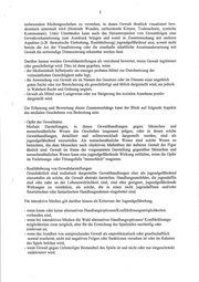 insbesondere Mediengeschehen zu verstehen, in denen Gewalt deutlich visualisiert bzw. akustisch untermalt wird (blutende Wunden, zerberstende Körper, Todesschreie, zynische Kommentare). Unter Umständen kann auch das Herunterspielen von Gewaltfolgen eine Gewaltverharmlosung zum Ausdruck bringen und somit in Zusammenhang mit anderen Aspekten (z.B. thematische Einbettung, Realitätsbezug) jugendgefährdend sein, soweit nicht bereits die Art der Visualisierung oder die ernsthafte inhaltliche Auseinandersetzung mit Gewalt die notwendige Distanzierung erkennbar werden lässt. Darüber hinaus werden Gewaltdarstellungen als verrohend bewertet, wenn Gewalt legitimiert oder gerechtfertigt wird. Dies ist dann gegeben, wenn - der Medieninhalt Selbstjustiz als einziges probates Mittel zur Durchsetzung der vermeintlichen Gerechtigkeit nahe legt, - die Anwendung von Gewalt als im Namen des Gesetzes oder im Dienste einer angeblich guten Sache oder zur Bereicherung als gerechtfertigt und üblich dargestellt wird, sie jedoch in Wahrheit Recht und Ordnung negiert, - Gewalt als Mittel zum Lustgewinn oder zur Steigerung des sozialen Ansehens positiv dargestellt wird. | Zur Erfassung und Bewertung dieser Zusammenhänge kann der Blick auf folgende Aspekte des medialen Geschehens von Bedeutung sein: - Opfer der Gewalttaten Mediale Darstellungen, in denen ' Gewalthandlungen gegen Menschen und menschenähnliche Wesen das Geschehen insgesamt prägen, oder in denen solche Gewalthandlungen, detailliert und selbstzweckhaft dargestellt werden, sind als jugendgefährdend einzustufen. Als menschenähnliche Wesen sind solche Wesen zu betrachten, die dem Menschen nach objektiven Maßstäben der äußeren Gestalt der Figur ähnlich sind. Gewalt im Sinne der vorgenannten Darstellung gegenüber Menschen und menschenähnlichen Wesen kann eine jugendgefährdende Wirkung entfalten, wenn die Opfer im Verletzungs- oder Tötungsfalle "menschlich" reagieren. - Realitätsbezug von Gewaltdarstellungen Grundsätzlich sind realistisch dargestellte Gewalthandlungen eher als jugendgefährdend einzustufen als solche, die Gewalt abstrakt darstellen. Handlungsumfelder, die jugendaffin sind oder nahe an der Lebenswirklichkeit sind, sind eher geeignet, jugendgefährdende Wirkungen zu verstärken, als solche, die in einen nicht jugendaffinen und/oder futuristischen oder fantastischen Handlungsrahmen eingebettet sind. Für interaktive Medien gilt darüber hinaus als Kriterium der Jugendgefährdung, - wenn kaum oder keine alternativen Handlungsoptionen/Konfliktlösungsmöglichkeiten vorhanden sind, - wenn bei interaktiven Medien die Wahl alternativer Handlungsoptionen/ Konfliktlösungs- möglichkeiten zwar möglich, aber für die Erreichung des Spielzieles nachteilig oder irrelevant ist, - wenn das Ausüben von entsprechender Gewalt als unproblematisch oder gesellschaftlich normal erscheint, nicht mit negativen Folgen oder Sanktionen versehen ist oder im Rahmen des Spiels belohnt wird, - wenn Gewalt gegen Unbeteiligte Bestandteil des Spiels ist und nicht oder nur eingeschränkt sanktioniert wird.