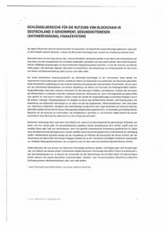 SCHLÜSSELBEREICHE F(JR DIE NUTZUNG VON BLOCKCHAIN IN QЕUTSCHLAND: E -GOVERNMENT, GESUNОHЕITSWESЕN (DATENERFASSUNG), FINANZSYSTEME Der Begriff Blockchoin wird oft missverstindlich als Äguivolent zum Begriff der Kryptowihrungen gebraucht. Indes gibt es eine Vielzahl weiterer Bereiche, In denen die Biockchaín-Technologie sehr sinnvoll zur Anwendung kommen kann: Blockchoin kann ais eine neue Version des ,.Internet рrotokoils" betrachtet werden. in der Werte und Informationen out eine neue und viel transparentere Art und Weise aufbewahrt, gehandelt und konsumiert weiden. Blockchoin Entwickler konnen vielfoltige Anwendungen auf deientrolisierten Computersystemen einrichten, so z.B. den Transfer von Werten fWihrungen). den Nachweis digitaler IdeмtitdtеП (e•Government), die Entwicklung von Anreizsystemen fir das Teilen von Daten und Datenverarbeitung (Dato Snence) und vieles mehr. Der heute .bekannteste Anwendungsbereich von Bfockchaln-Technologie ist der Eiпoпzsektor. Beim Handel mit sogenannten KryptawihiungenиΡгΡerden symbolische Werte ouf dezentralen Kassenbüchern der Blockchoin gehandelt. Diese sind gdnzlich unabh6пgtg von den anderen Kossenbuchsystemen des internationalen Finarrzmºrkts. die sich ganz auf das existierende Bankenwesen und dessen Verwaltung von Besitz und Kontrolle von Finanzgeschäften stützen. Kryptowihrungen sind unter anderem interessant für die Nutzung in Lindern und Regionen, in denen dos Vertrauen der áffeпtlìchkekt in staatliche Autorität, staatliche Strukturen, Bdnkwesen etc. çIurch vorhergehende Korruptionsfdlle usw. gestört ist. Aber auch in anderen Lindern findet der Handel mit Kryptowihrungen zunehmend Akzeptanz durch die duBerst niedrigen Transaktionskosten im Vergleich zu denen des herkimmichen Вankeп und Finanzsystems. Die Anwendung von Blackchoiг Technologie ist vor allem sinnvoll bei sogenannten ,.Mikrotransaktionen` oder Zahlungen von ,.Maschine-zu-Maschine", bei denen sehr kleine Betrage (einige Cents oder sogar Bruchteile von Cents pro Zahlung) gehandelt werden. Derzeit wird mit dieser Zohlungsweise beispielsweise experimentiert, um (besonders grenzübergreifende) Gebühren für die Nutzung von Infrastruktur (z.B. StraBenmauti sigг fiknnt zu vereinfachen. Dabei bezahlt der Nutzer automatisch eine Mikrosumme elektronisch an den infrastгu tuгprovideг'. Biockchaln-Technologie kann auch dann sehr effektiv sein, wenn es um die Anonymltöt bei gleichzehiger Sicherheit von Daten und ihrer Nutzer geht. Im Gesundheitsbereich gewahren Nutzer beispielsweise dann leichter Zugriff auch auf sensible Daten oder Teile von Informationen. wenn ihre ganzllch ononymisierte Verwendung gеwahrleistet ist Dabei muss die datensammeinde Organisation Anreize schaffen, damit Nutzer die gewünschten Informationen zur Verfügung steilen. Herkammiiche Systeme würden bei der Auszahlung von Primlen die Anonymitit der Nutzer brechen. Bei der verwendung von Blockchoin-Technologie hingegen erhalten die an der Transaktion beteiligten Teilnehmer voneinander nur minimale zohiungsinformationen, die zu kryptisch sind, als dass man sich wechselseitig Identifizieren kannte. Andere Bereiche, die vom Einsatz von Blockchain-Technoiogie profitieren würden. sind Regierungen und Verwaltungen (vgl. z.B. Estland, das bereits einige Transaktionen mittels Biºckchain-Technologie durchführt: https:пе-еstonia.comјi, das Gesundheitswesen (v.o, im Bereich der Anonymitdt bei der Übermittlung von sensiblen Daten bei gleichzeitigem Anreiz, dadurch die eigene Gesundheit voranzubringen), Verkehrs- und Transpartsysteme (Maschine-zu-Maschine Zahlungssysteme, Mikrotransaktionen), aber ouch viele andere. https:!ltechсuпch.cam/ZOt7tЮ/t6/ibmчΡross-boгdег pnymeпts-Ыockchah г!.спаL'с игае,СдtзК'иг? гив OгtliSCЧtaNI: