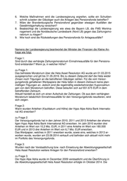 6. Welche Maßnahmen wird die Landesregierung ergreifen, sollte ein Schulden- schnitt zulasten der Gläubiger auch die Anlagen des Pensionsfonds betreffen? 7. Wäre der Brandenburgische Pensionsfond gegenüber etwaigen Ausfällen der Gewährträgerhaftung versichert? 8. Beabsichtigt die Landesregierung wie etwa die Bayern LB, die FMS Wertma- nagement und die Norddeutsche Landesbank (Nord LB) gegen das Zahlungsmo- ratorium zu klagen? 9. Wie hoch sind die Rückstellungen des Pensionsfonds für Anlageausfälle? Namens der Landesregierung beantwortet der Minister der Finanzen die Kleine An- frage wie folgt: Frage 1: Sind durch das verhängte Zahlungsmoratorium Einnahmeausfälle für den Pensions- fond entstanden? Wenn ja, in welcher Höhe? zu Frage 1: Das befristete Moratorium über die Heta Asset Resolution AG wurde am 01.03.2015 ausgesprochen und gilt bis 31.05.2016. Bis zu diesem Zeitpunkt darf die Heta weder Zinsen noch Tilgungen an die betroffenen Gläubiger zahlen. Für die vom Versor- gungsfonds gehaltenen Wertpapiere der Heta fallen in diesem Zeitraum keine plan- mäßigen Tilgungen an. Jedoch sind die regelmäßig wiederkehrenden Kuponzahlun- gen von dem Moratorium betroffen. Diese belaufen sich auf 651.675 EUR in dem betreffenden Zeitraum. Aktuell handelt es sich um einen Aufschub der Zahlungen. Ob aus dem verhängten Moratorium tatsächlich Einnahmeausfälle für den Versorgungsfonds resultieren, wird sich zeigen. Frage 2: Wann wurden Anleihen (Kaufdatum und Höhe) der Hypo Alpe-Adria Bank Internatio- nal AG erworben? zu Frage 2: Der Versorgungsfonds hat in den Jahren 2010, 2011 und 2013 Anleihen der ehema- ligen Hypo Alpe Adria Bank International AG erworben. Im Jahr 2010 wurden drei Anleihen im Wert von 10,3 Mio. EUR, in 2011 eine Anleihe im Wert von 180.000 EUR und in 2013 drei Anleihen im Wert von 6,7 Mio. EUR erworben. Das Wertpapier, welches in 2011 erworben wurde, sowie eins, welches in 2013 er- worben wurde, wurden am 23.09.2014 verkauft und befinden sich aktuell nicht mehr im Portfolio des Versorgungsfonds. Frage 3: Wurden nach der Verstaatlichung bzw. nach Einsetzung der Abwicklungsgesellschaft Heta Asset Resolution weitere Anlagen für den Pensionsfond erworben? zu Frage 3: Die Hypo Alpe Adria wurde im Dezember 2009 verstaatlicht und die Überführung in die Abwicklungsgesellschaft Heta Asset Resolution erfolgte im Oktober 2014. Die