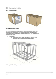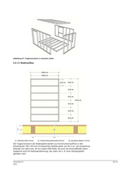 Abbildung 57: Tragkonstruktion in einzelnen Tafeln 5.2.1.2 Bodenaufbau Die Tragkonstruktion der Bodenplatte besteht aus Konstruktionsvollholz in den Dimensionen 100 x 60 mm im klassischen Holzbauraster von 62,5 cm. Als Aussteifung befindet sich oben eine 18 mm starke OSB Platte, die auch als Innenfußboden dient. Gedämmt wird mit Holzfaserdämmung, die unten von z. B. einer Rohspanplatte gehalten wird. Fraunhofer IVI 50 | 72 2022