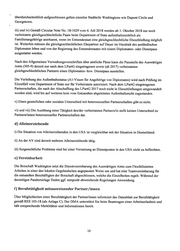 überdurchschnittlich aufgeschlossen gelten einzelne Stadtteile Washingtons wie Dupont Circle und Georgetown. iii) und iv) Gemäß Circular Note No. 18-1029 vom 6. Juli 2018 werden ab 1. Oktober 2018 nur noch verheiratete gleichgeschlechtliche Paare beim Department of State aufenthaltsrechtlich als Familienangehörige anerkannt, wenn im Entsendestaat eine gleichgeschlechtliche Eheschließung möglich ist. Weiterhin müssen die gleichgeschlechtlichen Ehepartner auf Dauer im Haushalt des ausländischen Diplomaten leben und von der Regierung des Entsendestaates mit einem Diplomaten- oder Dienstpass ausgestattet werden. Nach den Allgemeinen Verwaltungsvorschriften über amtliche Pässe kann die Passstelle des Auswärtigen Amts (505-9) derzeit nur nach dem LPartG eingetragenen sowie (ab 2017) verheirateten gleichgeschlechtlichen Partnern einen Diplomaten- bzw. Dienstpass ausstellen. Die Verleihung des Aufenthaltsstatus (Al-Visum für Angehörige von Diplomaten) wird nach Prüfung im Einzelfall vom Department of State nur für Verheiratete autorisiert. Nach dem LPartG eingetragenen Partnerschaften, die nach der Abschaffung des LPartG 2017 noch nicht in Eheschließungen umgewandelt worden sind, wird bis auf weiteres kein vom Entsandten abgeleitetes Aufenthaltsrecht zugestanden. v) Einen gesetzlichen oder sozialen Unterschied mit heterosexuellen Partnerschaften gibt es nicht. vi) und vii) Die Ausübung einer Tätigkeit des/der verheirateten Partners/in stellt keinen Unterschied zu Partnern/innen heterosexueller Partnerschaften dar. d) Alleinerziehende i) Die Situation von Alleinerziehenden in den USA ist vergleichbar mit der Situation in Deutschland. ii) An der AV sind derzeit mehrere Alleinerziehende tätig. iii) Sorgerechtliche Probleme sind bei einer Versetzung an Dienstposten in den USA nicht zu befürchten. e) Vereinbarkeit Die Botschaft Washington setzt die Dienstvereinbarung des Auswärtigen Amts zum Flexibilisierten Arbeiten in einer den lokalen Gegebenheiten angepassten Weise um und hat eine Teamvereinbarung für die entsandten Beschäftigten der Botschaft abgeschlossen, welche die Einzelheiten regelt. Während der derzeitigen Pandemielage finden ggf. temporär abweichende Regelungen Anwendung. f) Berufstätigkeit mitausreisender Partner/innen Über Möglichkeiten einer Berufstätigkeit der Partner/innen informiert das Datenblatt zur Berufstätigkeit gemäß RES 103-18 (als Anlage C). Der DMA unterstützt Sie beim Beantragen einer Arbeitserlaubnis und hält entsprechende Merkblätter und Informationen bereit. 15