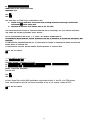 They further told us that it would be sufficient to make the text on monitoring a part of the German notification.
