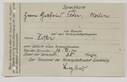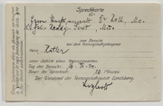 Haupttor der OUS jrohe als Juswers Om eendigung ER 2 Diese Sprechkarte I a ÄM ZWUCHKZUGSSEN, L Anstalt und Ist nach iPder Onstolf Sprechkarte > Ahgelhahat, on Pan zum Besuche Her; bei dem Be Et n en ee 4 4 Tag des Besuchs: A % T A924 Däver der Sprechzeiti.... 412 re Diener, Der Vorstand der Vestungshofanstot Landsberg,