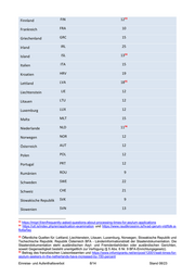 Finnland FIN 1293 Frankreich FRA 10 Griechenland GRC 15 Irland IRL 25 Island ISL 1394 Italien ITA 15 Kroatien HRV 19 Lettland LVA 1895 Liechtenstein LIE 12 Litauen LTU 12 Luxemburg LUX 12 Malta MLT 15 Niederlande NLD 1196 Norwegen NOR 12 Österreich AUT 12 Polen POL 12 Portugal PRT 12 Rumänien ROU 9 Schweden SWE 22 Schweiz CHE 21 Slowakische Republik SVK 9 Slowenien SVN 13 93 https://migri.fi/en/frequently-asked-questions-about-processing-times-for-asylum-applications 94 https://utl.is/index.php/en/application-examination und https://www.raudikrossinn.is/hvad-gerum-vid/folk-a- flotta/faq 95 Öffentliche Quellen für: Lettland, Liechtenstein, Litauen, Luxemburg, Norwegen, Slowakische Republik und Tschechische Republik: Republik Österreich BFA - Länderinformationsblatt der Staatendokumentation. Die Staatendokumentation steht ausländischen Asyl- und Fremdenbehörden oder ausländischen Gerichten, soweit Gegenseitigkeit besteht unentgeltlich zur Verfügung (§ 5 Abs. 6 Nr. 9 BFA-Einrichtungsgesetz). 96 Beitrag des französischen Liaisonbeamten und https://www.infomigrants.net/en/post/12001/wait-times-for- asylum-seekers-in-the-netherlands-have-increased-by-150-percent Einreise- und Aufenthaltsverbot 8/14 Stand 08/23