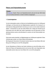 1/8 Pässe und Originaldokumente Hinweis: Die DA AVS, Kapitel „Pässe und Originaldokumente“ gilt auch für das VSD! Anbei wird auf die Besonderheiten im Dublin-Verfahren eingegangen. 1. Zuständigkeiten Von den Außenstellen werden im Rahmen der Identitätsklärung durch ein InfoRequest Unterlagen und Dokumente bei den Mitgliedsstaaten angefordert. Der Austausch von Informationen erfolgt gemäß Dublin-Verordnung nur durch von den Ländern bestimmte Stellen. In Deutschland ist dies das Dublin-Referat 32C. Erfolgt die Anforderung der Dokumente durch eine ABH oder andere Organisation sind die Dokumente vom Mit- gliedssaat ebenso zuerst an das Bundesamt zu senden und nach Dokumentation wei- terzuleiten. Dokumente werden ebenfalls von Mitgliedsstaaten per InfoRequest angefordert. Diese Anforderungen werden vom Dublin-Referat 32B bearbeitet. Bei Eingang der Dokumente im Bundesamt werden diese durch das Referat 32B unter Bezug des InfoRequest an den MS weitergeleitet. Ist eine Überstellung im Rahmen des Dublin-Verfahrens an einen MS erfolgt und be- finden sich Pässe und Originaldokumente noch bei einer ABH, einer Organisation oder Außenstelle werden diese durch das Referat 32C an den MS weitergeleitet. Pässe und Originaldokumente Stand 11/2020