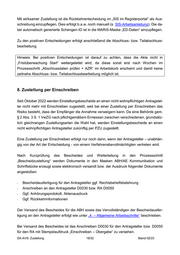 Mit wirksamer Zustellung ist die Rückkehrentscheidung im „SIS im Registerportal“ als Aus- schreibung einzupflegen. Dies erfolgt b.a.w. noch manuell (s. SIS-Arbeitsanleitung). Die da- bei automatisch generierte Schengen-ID ist in die MARiS-Maske „ED-Daten“ einzupflegen. Zu den positiven Entscheidungen erfolgt anschließend die Abschluss- bzw. Teilabschluss- bearbeitung. Hinweis: Bei positiven Entscheidungen ist darauf zu achten, dass die Akte nicht in „Fristüberwachung Start“ weitergeleitet wird, da diese sonst erst nach Wochen im Prozessschritt „Abschlussdaten prüfen + AZR“ im Arbeitskorb erscheint und damit keine zeitnahe Abschluss- bzw. Teilabschlussbearbeitung möglich ist. 8. Zustellung per Einschreiben Seit Oktober 2022 werden Einstellungsbescheide an einen nicht wohnpflichtigen Antragstel- ler nicht mehr mit Einschreiben zugestellt, weil bei einer Zustellung per Einschreiben das Risiko besteht, dass der Empfänger die Annahme verweigern kann. Da eine Behörde gem. § 2 Abs. 3 S. 1 VwZG nach pflichtgemäßem Ermessen zwischen verschiedenen, grundsätz- lich gleichrangen Zustellungsarten die Wahl hat, werden Einstellungsbescheide an einen nicht wohnpflichtigen Antragsteller zukünftig per PZU zugestellt. Eine Zustellung per Einschreiben erfolgt nur noch dann, wenn der Antragsteller – unabhän- gig von der Art der Entscheidung - von einem Verfahrensbevollmächtigten vertreten wird. Nach Kurzprüfung des Bescheides und Weiterleitung in den Prozessschritt „Bescheidzustellung“ werden Dokumente in den Masken ABH/AE Kommunikation und Schriftstücke erzeugt sowie elektronisch versandt bzw. der Ausdruck folgender Dokumente angestoßen: - Bescheidausfertigung für den Antragsteller ggf. Rechtsbehelfsbelehrung - Anschreiben an den Antragsteller D0030 bzw. RA D0050 - Ggf. Anhörungsprotokoll, Aktenausdruck - Ggf. Rückkehrinformationen Der Versand des Bescheides für die ABH sowie das Vervollständigen der Bescheidausfer- tigung an den Antragsteller erfolgt wie unter „4. – Allgemeine Arbeitsschritte“ beschrieben. Bei Versand des Bescheides ist das Anschreiben D0030 für den Antragsteller bzw. D0050 für den RA mit Stempelaufdruck „Einschreiben – Übergabe“ zu versehen. DA-AVS: Zustellung 18/32 Stand 02/23