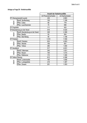 Seite 5 von 6 Anlage zu Frage 20 - Verkehrsunfälle Anzahl der Verkehrsunfälle mit Personenschaden mit Sachschaden Polizeiinspektion Ostprignitz-Ruppin 332 2.998 RevB. Neuruppin 161 1.381 PRev. Kyritz 58 664 davon PRev. Wittstock/Dosse 73 570 PRev. Rheinsberg 40 383 PI Prignitz davon PRev. Pritzwalk 61 856 PI Oberhavel 745 4.992 RevB. Oranienburg 261 1.808 davon PRev. Gransee 140 1204 PRev. Hennigsdorf 344 1980 PI Oder-Spree/Frankfurt (O.) 730 6.541 RevB. Fürstenwalde 236 1.981 PRev. Erkner 188 1.126 davon PRev. Eisenhüttenstadt 154 1.835 PRev. Frankfurt (Oder) 152 1.599 PI Märkisch-Oderland 627 5.415 RevB. Strausberg 184 1.749 PRev. Bad Freienwalde 116 1.017 davon PRev. Neuenhagen 245 1.802 PRev. Seelow 82 847 PI Barnim 625 4.621 RevB. Bernau 401 2.973 davon PRev. Eberswalde 224 1.648 PI Uckermark 412 3.651 RevB. Prenzlau 124 1.264 PRev. Schwedt 133 1.048 davon PRev. Angermünde 72 639 PRev. Templin 83 700 PI Cottbus/Spree-Neiße 641 6.090 RevB. Cottbus 368 3.308 PRev. Forst 115 1.060 davon PRev. Guben 78 833 PRev. Spremberg 80 889 PI Elbe-Elster 310 2.630 RevB. Finsterwalde 136 971 davon PRev. Elsterwerda 84 820 PRev. Herzberg 90 839 PI Dahme-Spreewald 477 3.869 RevB. Königs Wusterhausen 337 2.540 davon PRev. Lübben 140 1.329
