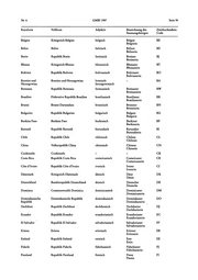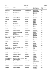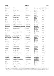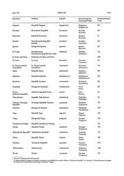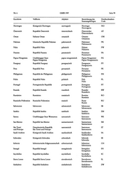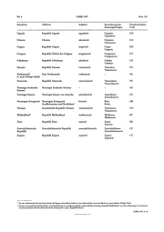 Der in der letzten Spalte aufgeführte Zweibuchstaben-Code richtet sich nach der Codierung der Normen DIN EN 23166 bzw.