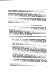 lastung des Bodenbelags, auch im Falle einer späteren Abnahme der Tragfähigkeit des Bo- denbelags, zu verhindern, ergeht die Auflage in Ziff. 1.4.1.4.2. Die Abfertigungspositionen erfüllen, wie oben in Ziff. 2.1.4.2 bereits im Einzelnen dargestellt wurde, im Hinblick auf die Dimensionierung und die Abstandsflächen’”” die jeweiligen Vo- raussetzungen für einen aus flugbetrieblicher Sicht sicheren Betrieb in dem Umfang, wie er in den Antragsunterlagen entsprechend für die unterschiedlichen ICAO-Kategorien ausge- führt wurde, vgl. Ziff. 2.1. Das heißt, die Remote-Positionen sind jeweils für den sicheren Betrieb von Maschinen der ICAO-Kategorie C bzw. in einem Fall (Position R65) der ICAO- Kategorie B geeignet. Auch die Gebäude-Positionen sind im Hinblick auf deren Dimensionie- “ rung’ und die Abstandsflächen für die vorgesehenen Maschinen des ICAO-Kategorie C ge- eignet, wobei auf sieben Positionen auch Maschinen der ICAO-Kategorie E abgestellt wer- - den können und eine sogar bei Bedarf für die ICAO-Kategorie F geeignet wäre. Eine besondere Beachtung muss allerdings der nördlichsten Position A01 zukommen, da dort das Höhenleitwerk zu einem kleinen Teil über die Betriebsstraße ragt, wenn an dieser Stelle eine Boeing B777-300 (ICAO-Kategorie E) abgestellt ist. Im Rahmen einer Risikobe- ' wertung dieser denkbaren Gefahrenlage kommt die TdV zu dem überzeugenden Ergebnis, dass es sich um tolerierbares Risiko handelt.’”* Ausschlaggebend ist insoweit der Umstand, dass die Betriebsstraße für besonders hohe Fahrzeuge gesperrt wird und die hier relevante mobile Passagiertreppe (PTR 18/10 ADN) nur im eingezogenen Zustand transportiert wer- den darf. Die Vorfeldrollbahnen erfüllen, wie oben in Ziff. 2.1.4.3 bereits im Einzelnen dargestellt wur- de, im Hinblick auf die Dimensionierung und die Abstandsflächen”® und auch die Markie- . rung’ jeweils die VoraussetZungen für einen aus flugbetrieblicher Sicht sicheren Betrieb in dem Umfang, wie er in den Antragsunterlagen entsprechend für die unterschiedlichen ICAO- Kategorien ausgeführt wurde. Das heißt, die beiden Rollleitlinien für Maschinen der ICAO- Kategorie C erlauben jeweils den parallelen oder gegenläufigen Betrieb mit diesen Flugzeu- gen auf den Vorfeldrolibahnen. Aus flugbetrieblicher Sicht ist ein ausreichender Abstand ZU- einander und zu sich auf dem Vorfeld befindlichen anderen Hindernissen gewahrt. Bei Ma- . schinen der ICAO-Kategorie E kann — wie hierfür vorgesehen — nur die mittlere Rollleitlinie der Vorfeldrollbahnen sicher genutzt werden. Diese mittlere Rollleitlinie kommt bei, Bedarf auch für Maschinen der ICAO-Kategorie F in Frage, wobei dann zusätzliche Sicherheits- maßnahmen erforderlich sind, wie der Einsatz eines Leitfahrzeuges.’’ Aus diesem Grund Schließlich erfüllt auch die Standplatzroligasse, wie oben in Ziff. 2.1.4.3 bereits im Einzelnen’ dargestellt wurde, im Hinblick auf die Dimensionierung und die Abstandsflächen”® und auch IN ”® ICAO Annex 14 (2013), Vol. 1, Abschnitt 3.13.6. - 74 Siehe hierzu Band 2, Anlage 4, Risikoanalyse, Abschnitt 4.2, Risiko IV/a. 75 ICAO Annex 14 (2013), Vol. 1, Abschnitt 3.13.6 und ICAO Aerodrome- Design Manual (2005), Part 2, Abschnitt 1.2, Table 1-4. a 2 ”® Vgl. ACI Apron Markings and Signs Handbook (2009), Abschnitt 2.6. 7 ICAO Operation of.New Larger Aeroplanes. at Existing Aerodromes (2004), Circular 305, Abschnitt 4.93. ' . 7® ICAO Annex 14 (2013), Vol. 1, Abschnitt 3.13.6 und ICAO. Aerodrome Design Manual (2005), Part 2, Abschnitt 1.2, Table 1-4. \ | \ 48