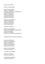 Kinder im Grundschulalter 0 Jahre bis Schuleintritt 1 Jahr bis einschließlich Grundschulalter 1 Jahr bis Schuleintritt 2 Jahre bis Schuleintritt 1 Jahr bis Schuleintritt 1/2 Jahr bis Schuleintritt 0 Jahre bis Schuleintritt Krippenkinder 0 bis 3 Jahre 0 Jahre bis Schuleintritt 0 Jahre bis Schuleintritt 1 Jahr bis einschließlich Grundschulalter 1/2 Jahr bis Schuleintritt 0 Jahre bis Schuleintritt 1 Jahr bis Schuleintritt Kinder im Grundschulalter 0 Jahre bis Schuleintritt 1/2 Jahr bis einschließlich Grundschulalter 0 Jahre bis Schuleintritt 0 Jahre bis einschließlich Grundschulalter 1/2 Jahr bis Schuleintritt 0 Jahre bis Schuleintritt Kinder im Grundschulalter 0 Jahre bis Schuleintritt 1 Jahr bis Schuleintritt Kinder im Grundschulalter 0 Jahre bis Schuleintritt 0 Jahre bis Schuleintritt Kinder im Grundschulalter 1/2 Jahr bis einschließlich Grundschulalter 1 Jahr bis Schuleintritt 1 Jahr bis Schuleintritt 1 Jahr bis Schuleintritt 1 Jahr bis einschließlich Grundschulalter 1 Jahr bis einschließlich Grundschulalter Kinder im Grundschulalter Kinder im Grundschulalter 0 Jahre bis Schuleintritt 0 Jahre bis einschließlich Grundschulalter